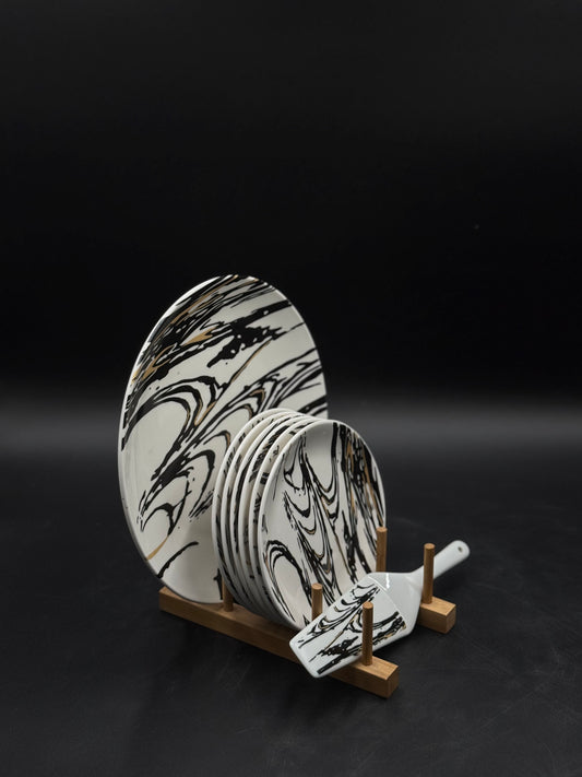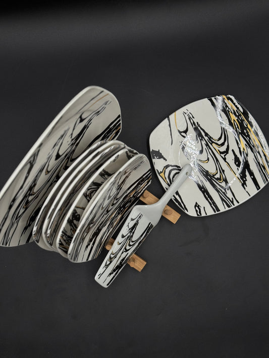 9 Pcs Black Marble Design Ceramic Cake Dish with Serving Plates 🎂✨