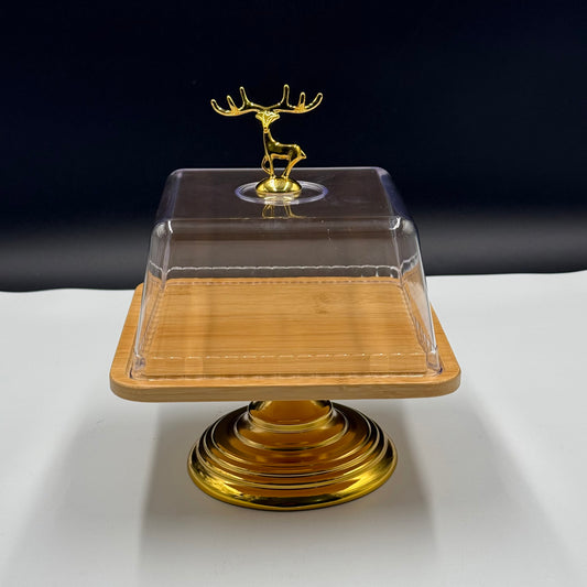 Bamboo Cake Dish with Acrylic Lid and Metal Stand✨