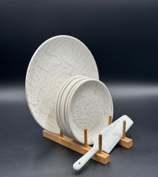 9 Pcs White Marble Design Ceramic Cake Dish with Serving Plates 🎂✨