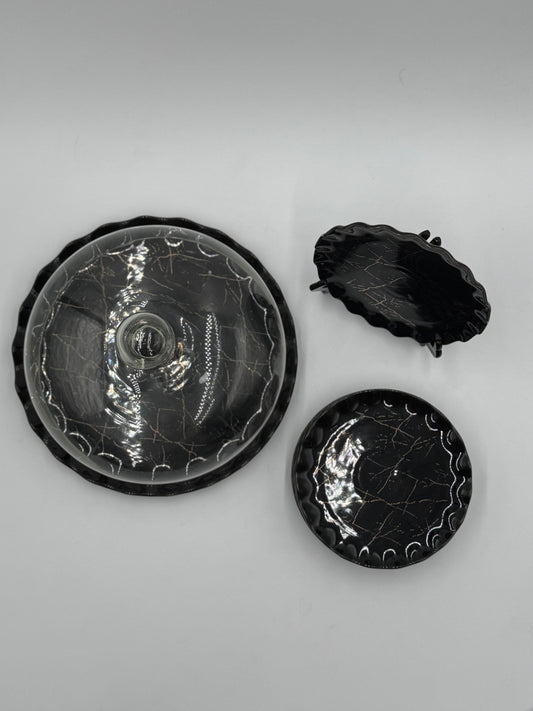 9 Pcs Black Marble Design Round Cake Plate Set with Stand 🎂✨