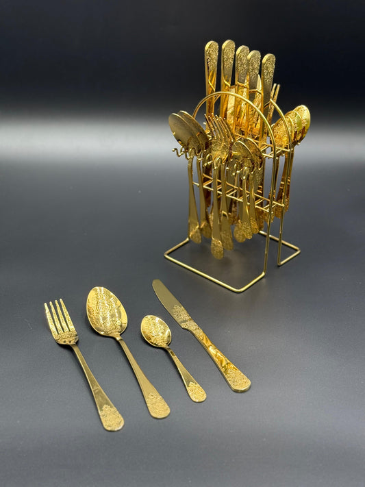 24 Pcs Golden Engraved Cutlery Set 🍴✨Regular price Rs.7,500Regular priceUnit price / perRs.16,500Sale price Rs.7,500Sale