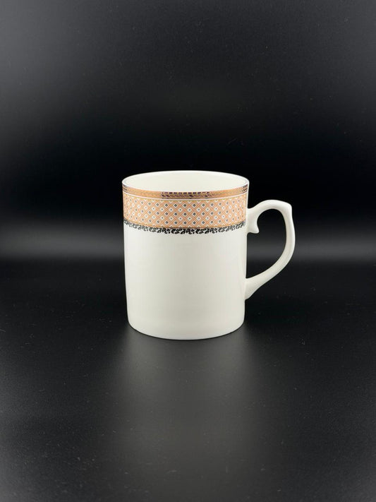 6 Pcs Large Grey Ornate Band Super Bone China Mug Set ✨