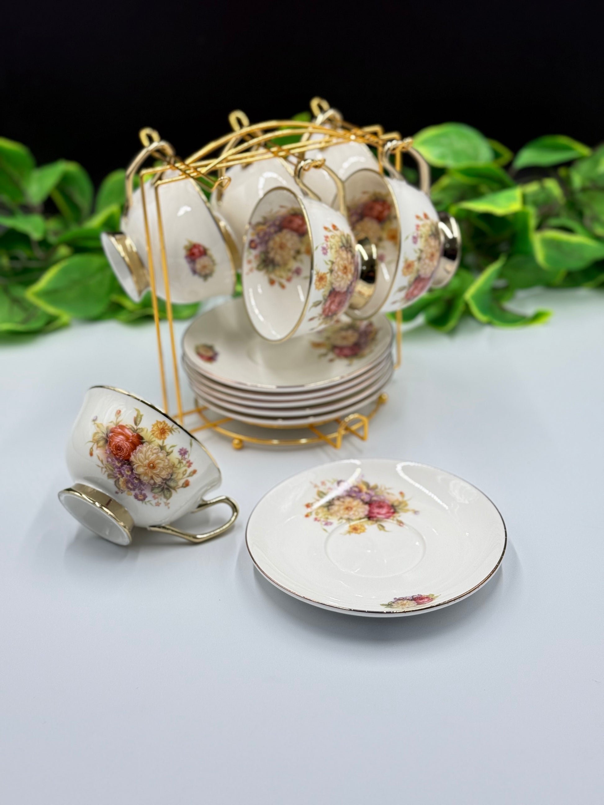 12 Pcs Marigold Flower Fine Bone China Cup & Saucer Set with Stand🌺
