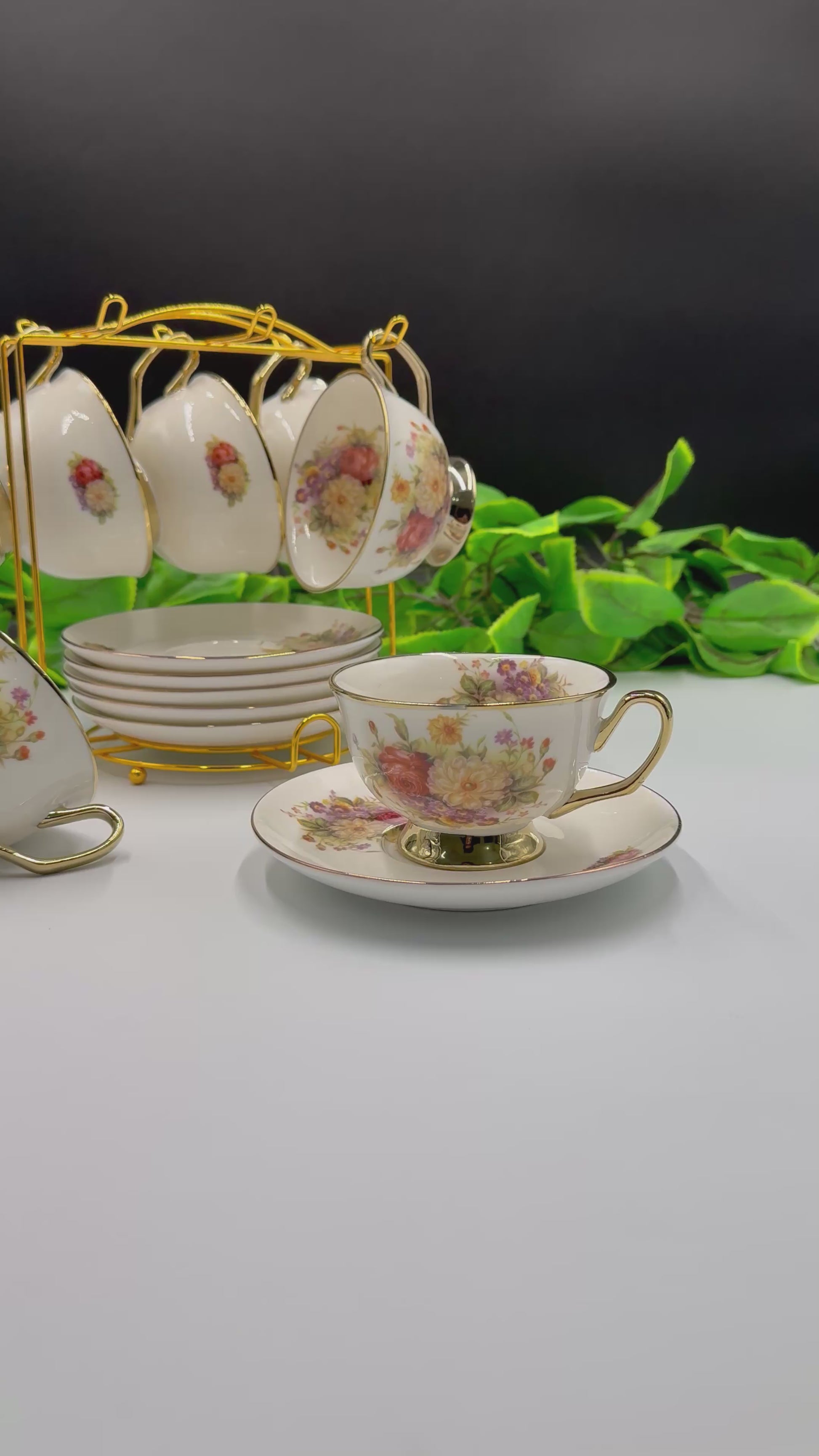 Delight in serene elegance with this charming set, featuring subtle floral designs in gentle pastels and refined gold accents. ☕🌸