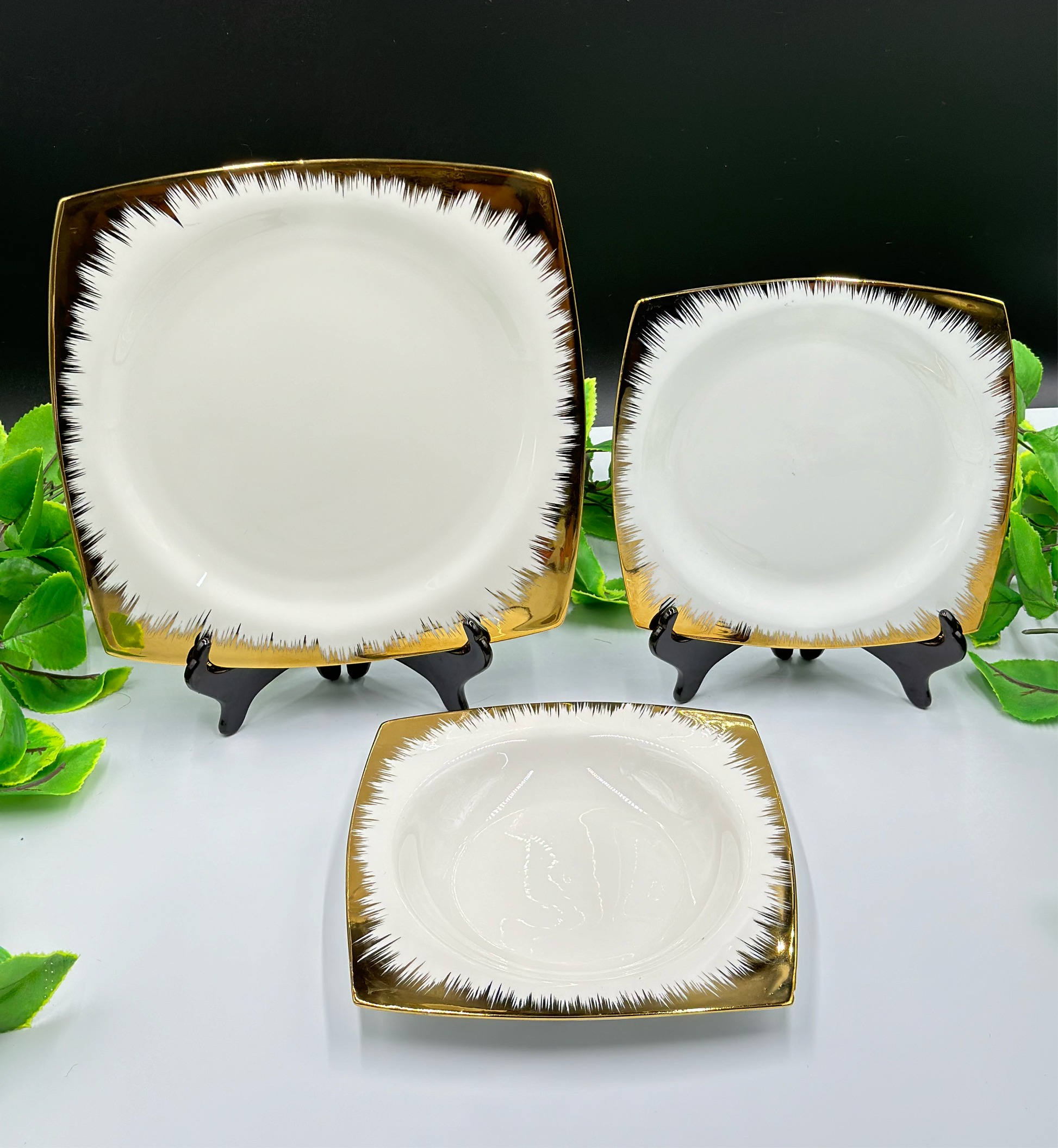 18 Pcs Gold Flame Rim Fine Bone China Square Plate Set π½οΈβ¨