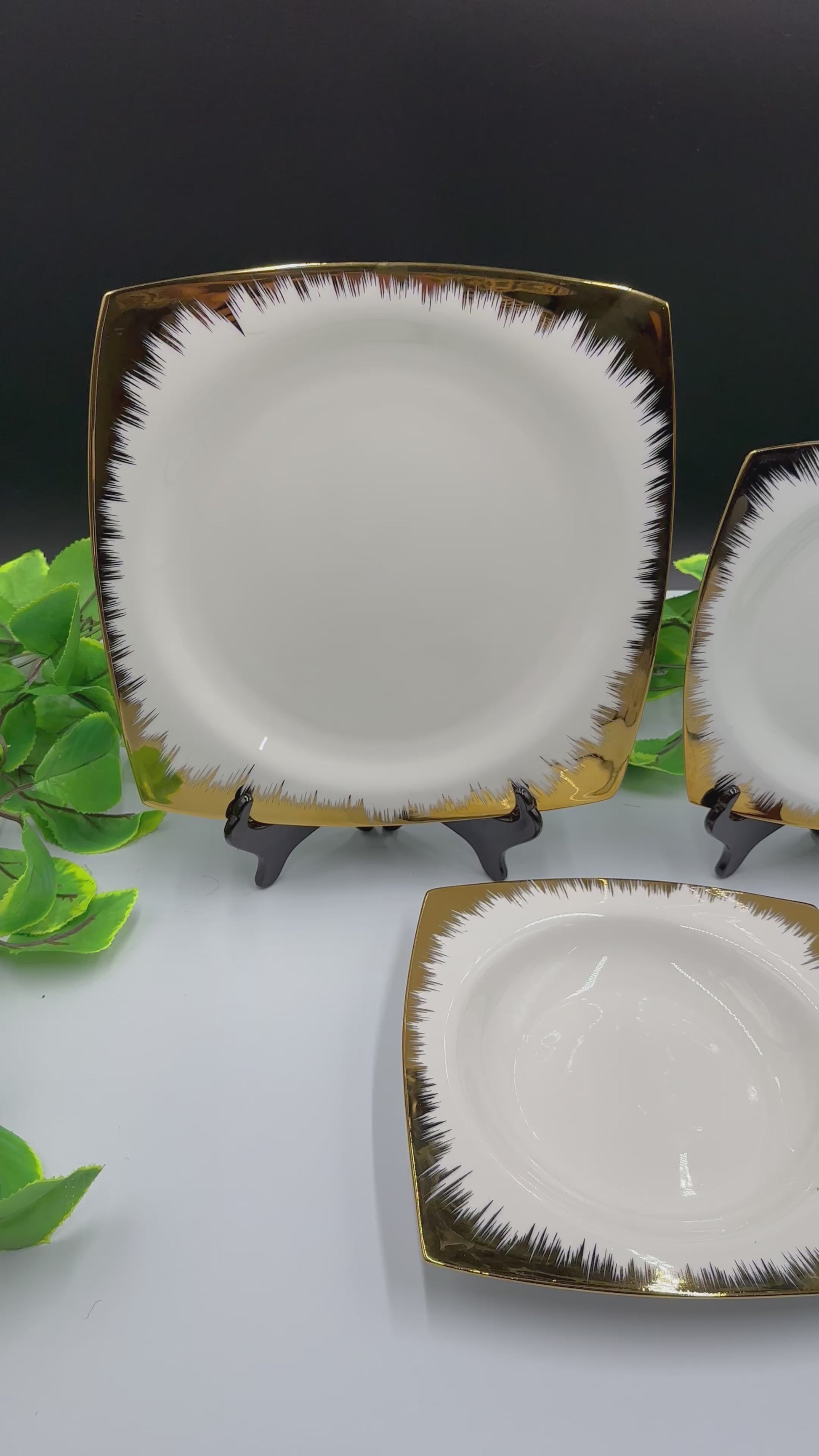 This 18 Pcs Gold Flame Rim Fine Bone China Square Plate Set includes: