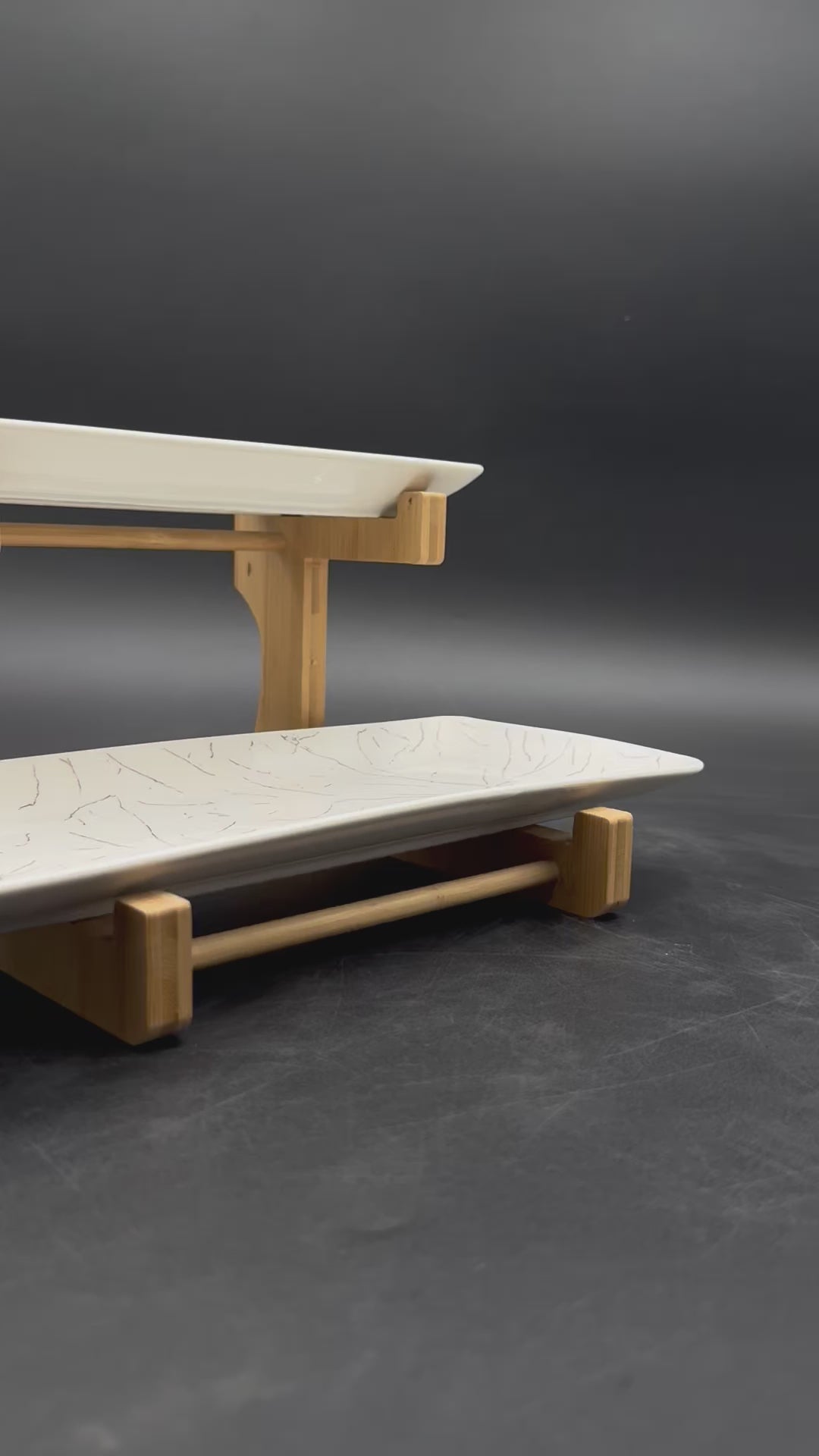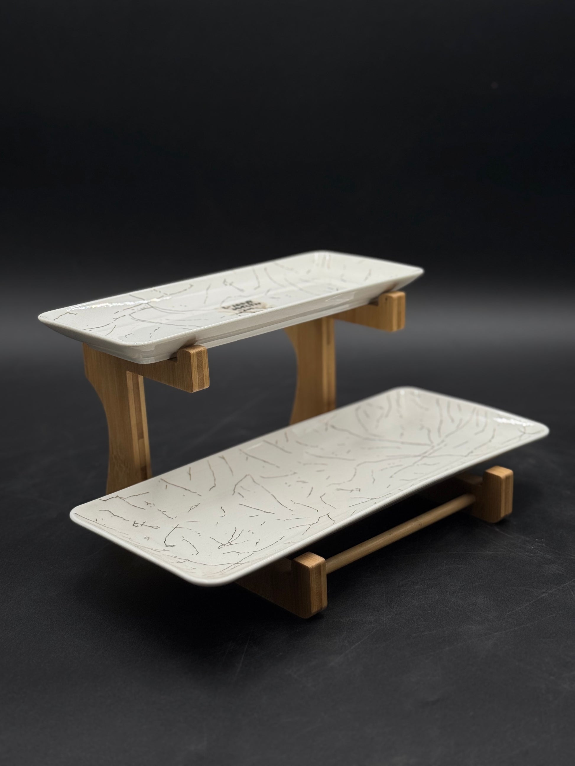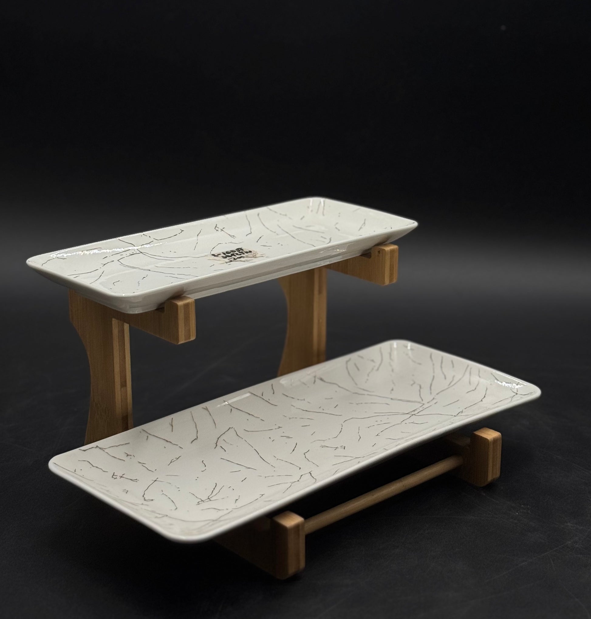 2 Tier White Marble Design Ceramic Serving Tray Set ✨