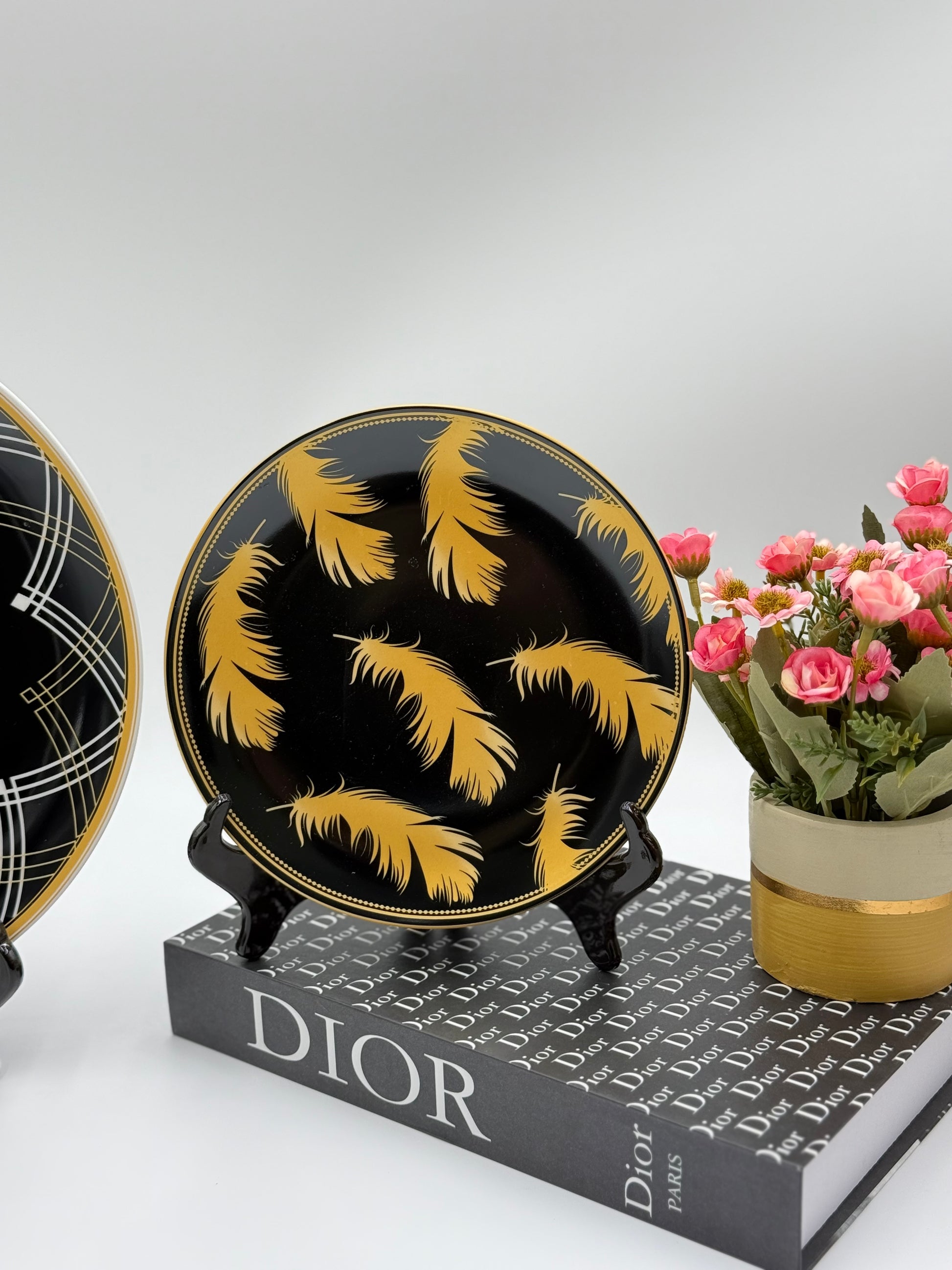 Perfect for daily dining or special gatherings, the glossy black finish and delicate feather accents bring a touch of class and charm to your table setting.