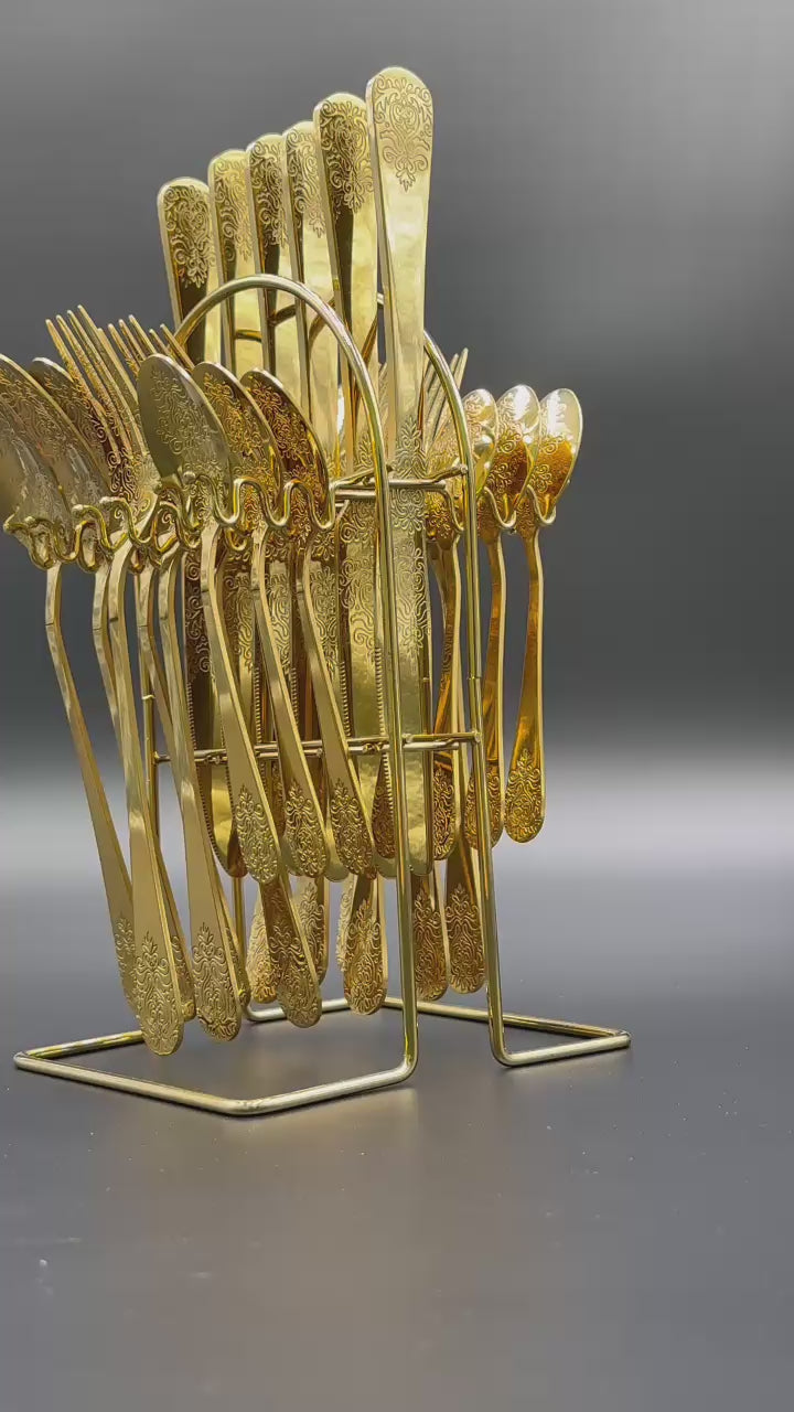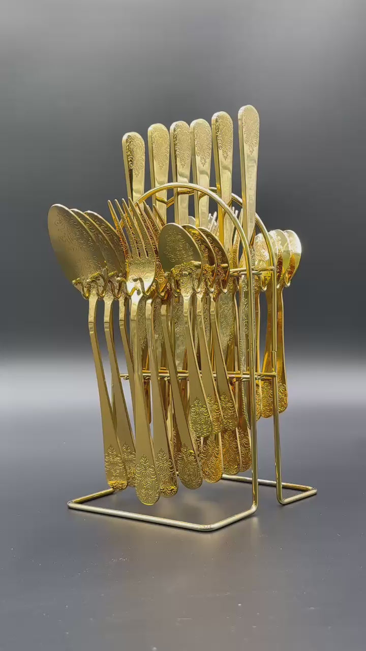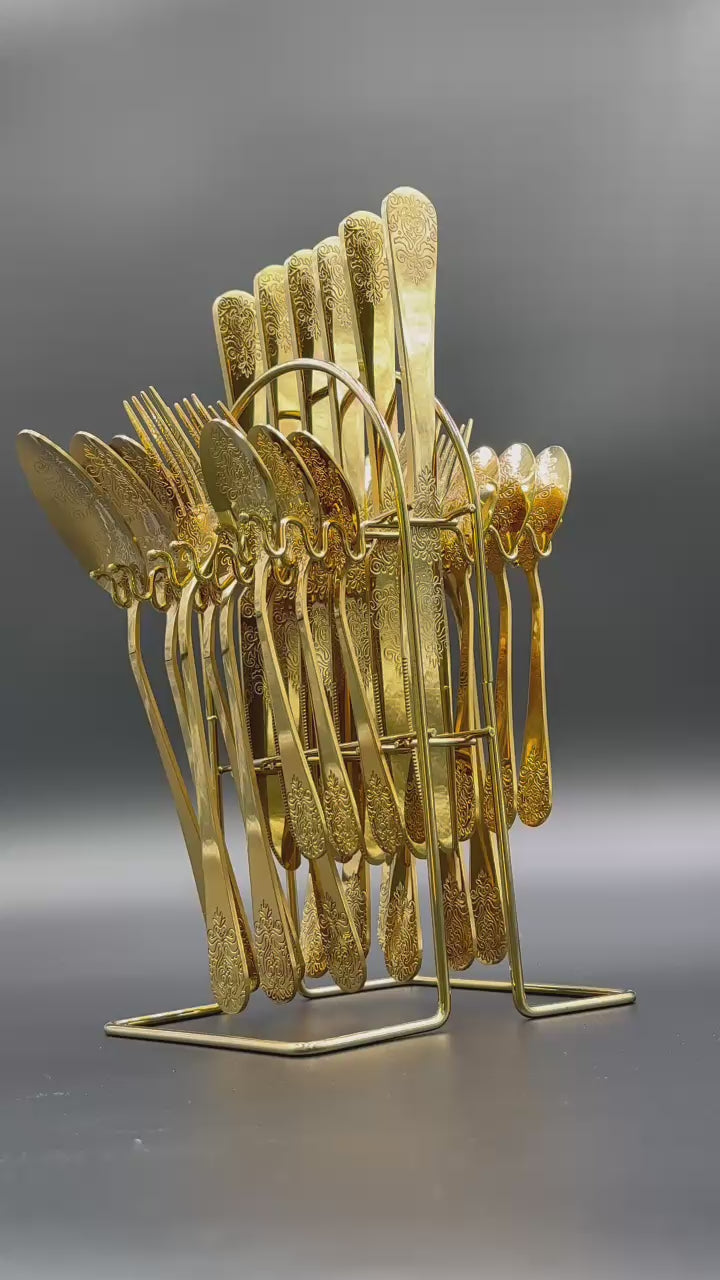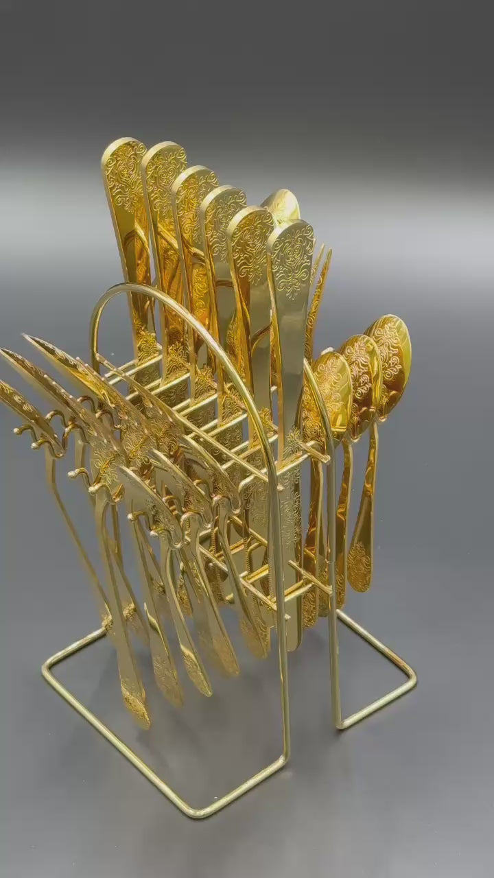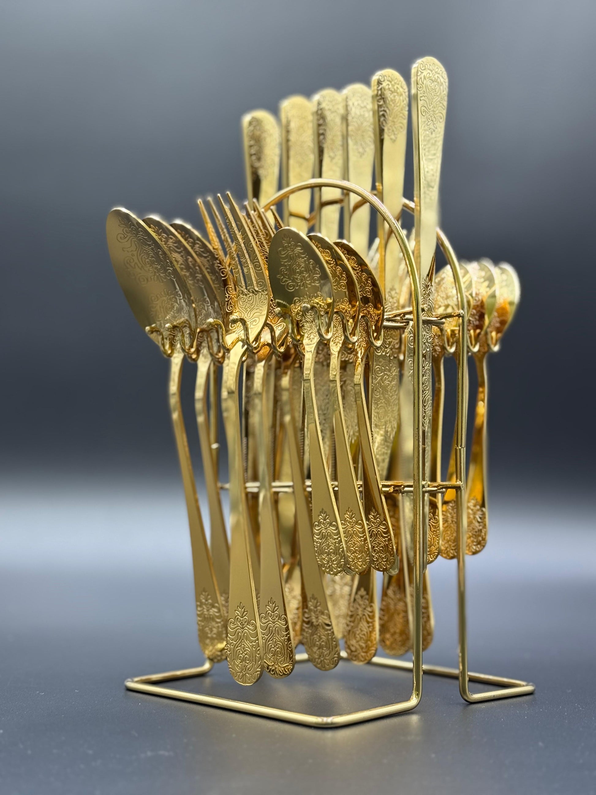 24 Pcs Golden Engraved Cutlery Set 🍴✨