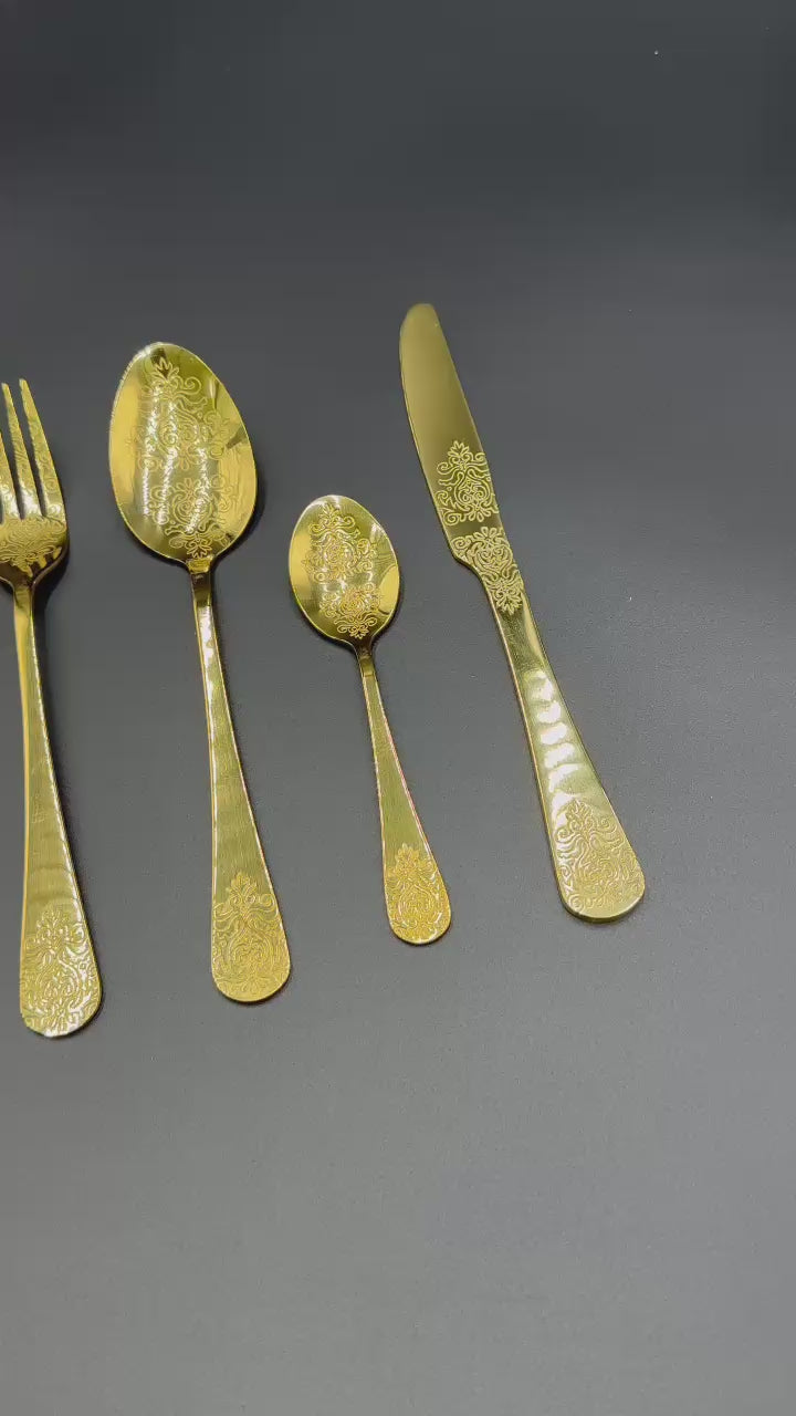 Elevate your dining experience with our 24-Piece Golden Engraved Cutlery Set. Crafted from premium stainless steel with a beautiful gold finish and detailed engravings, it adds a touch of elegance to any table. Perfect for special occasions or everyday elegance.✨