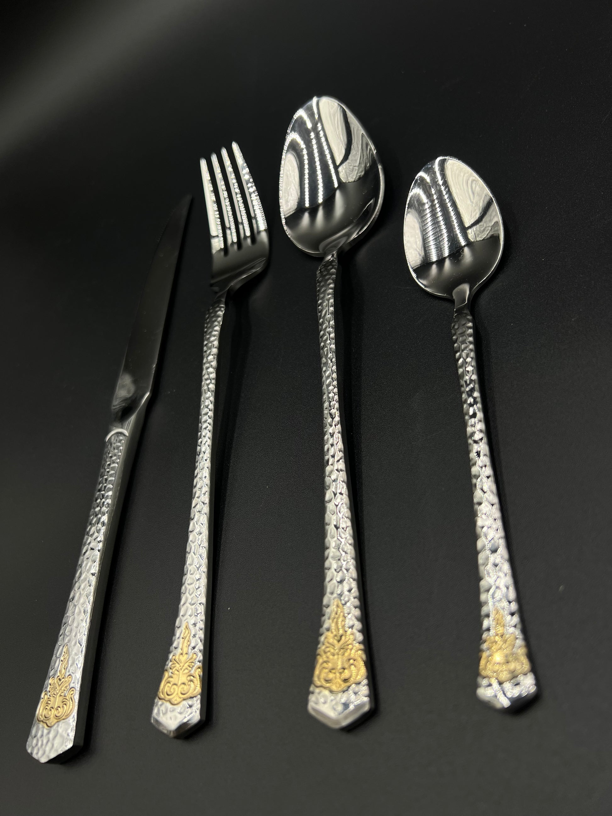 24 Pcs Stainless Steel Cutlery Set – Textured Silver Luxe