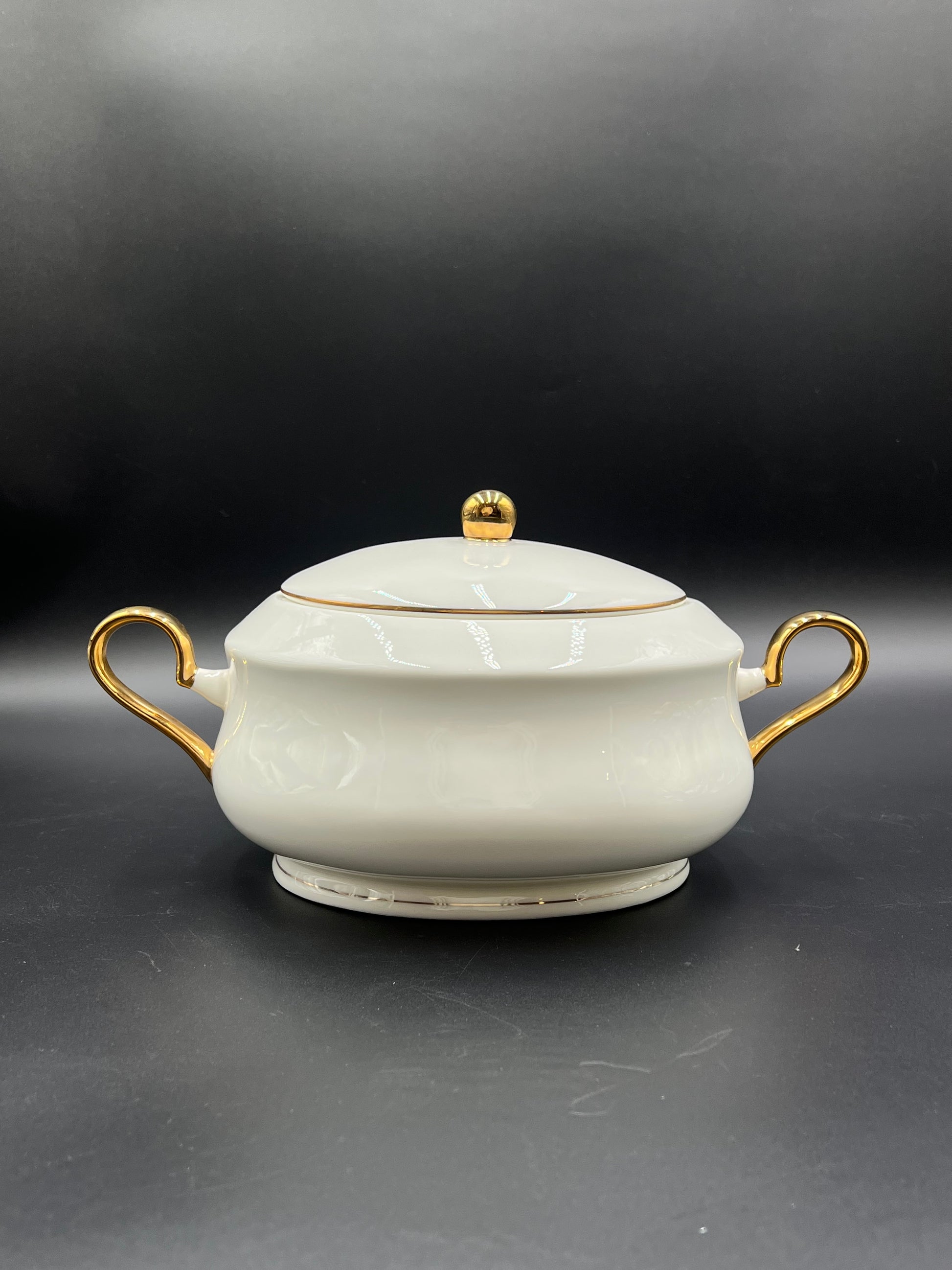 - Elegant white base with refined gold accents