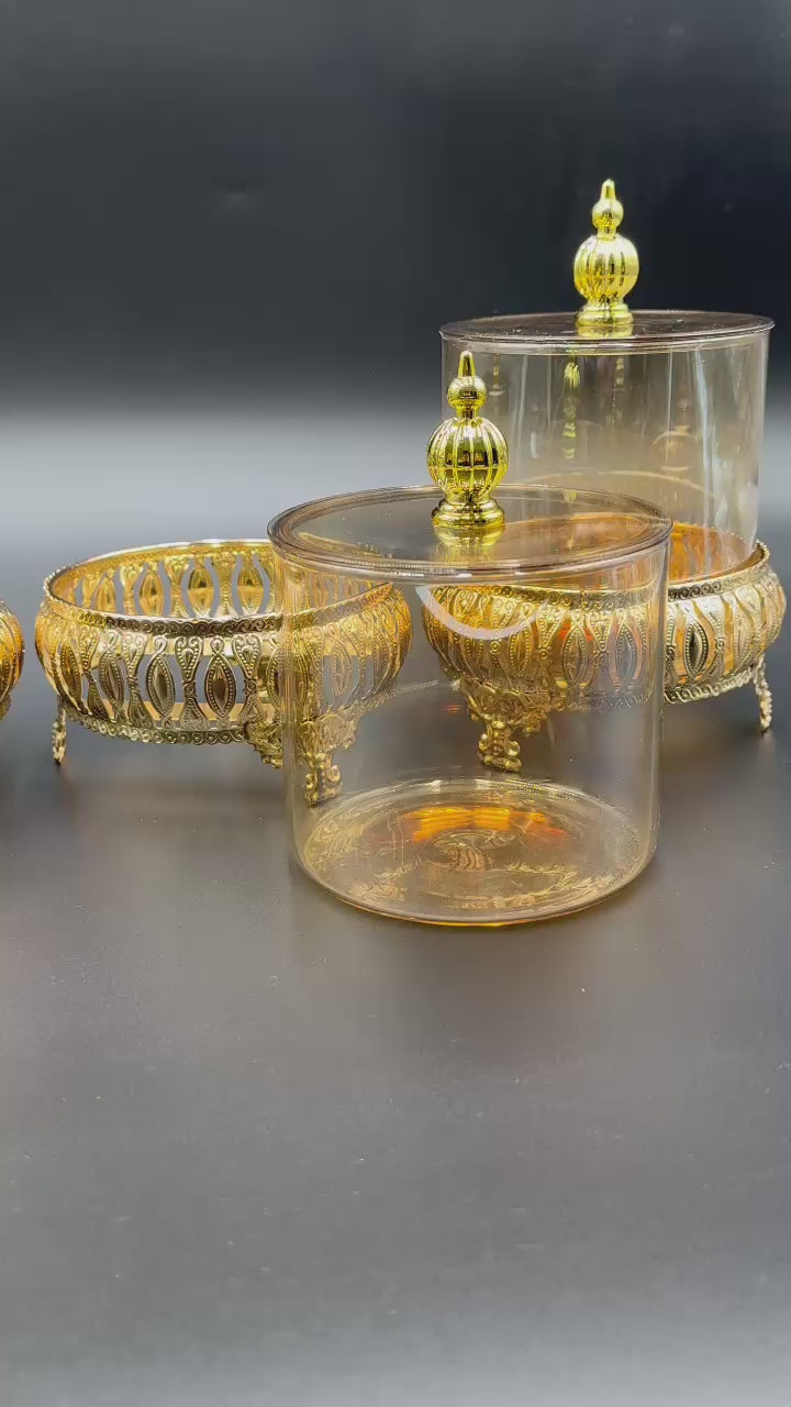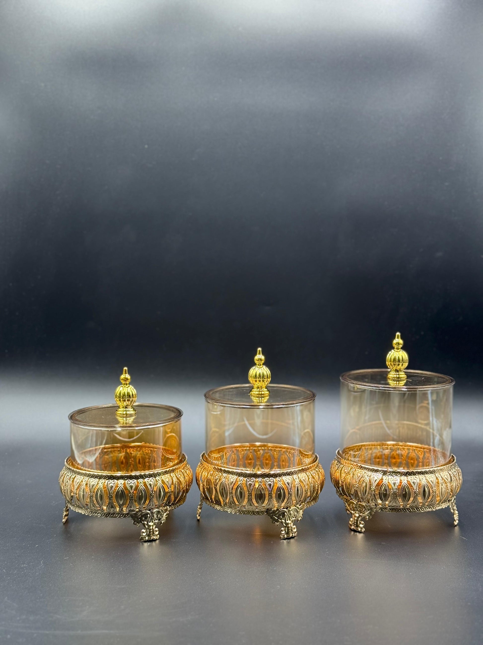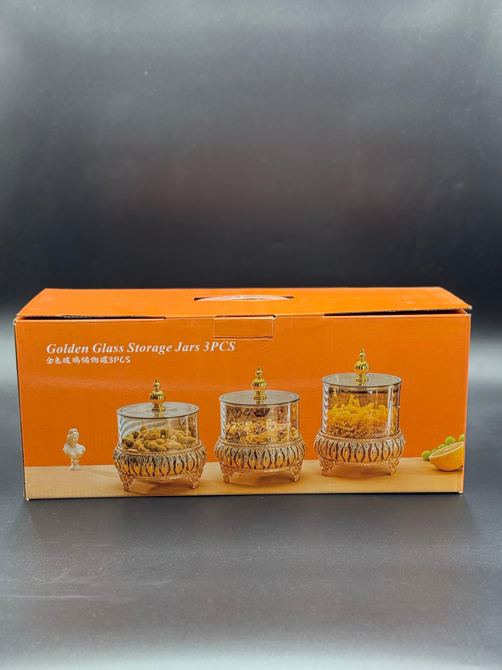 3 Pcs Golden Glass Storage Jars with Metal Stands✨