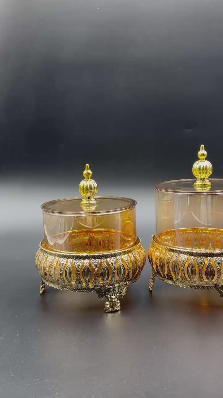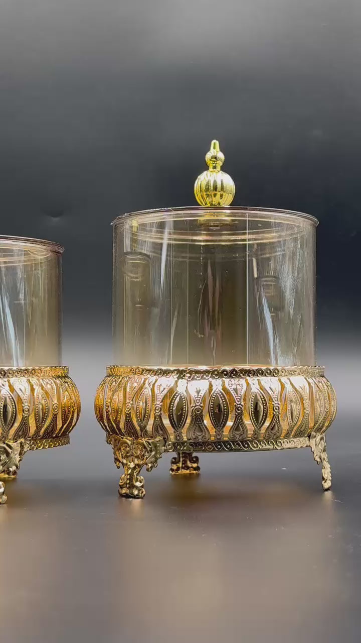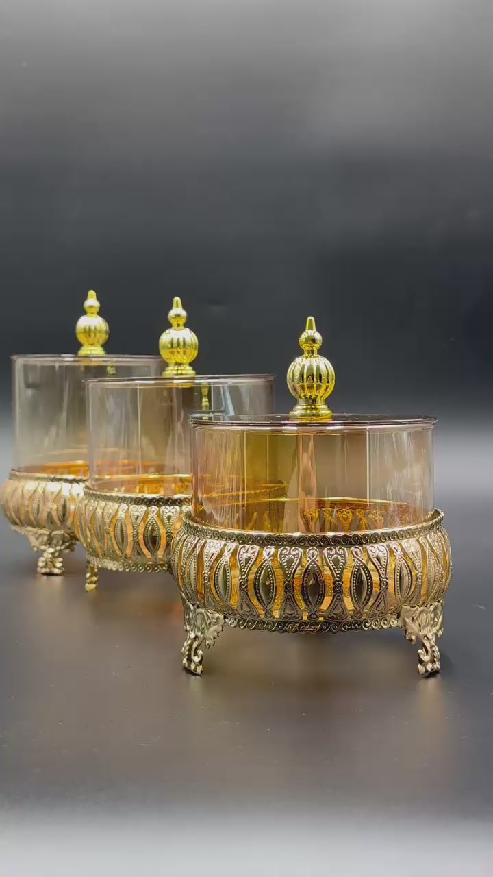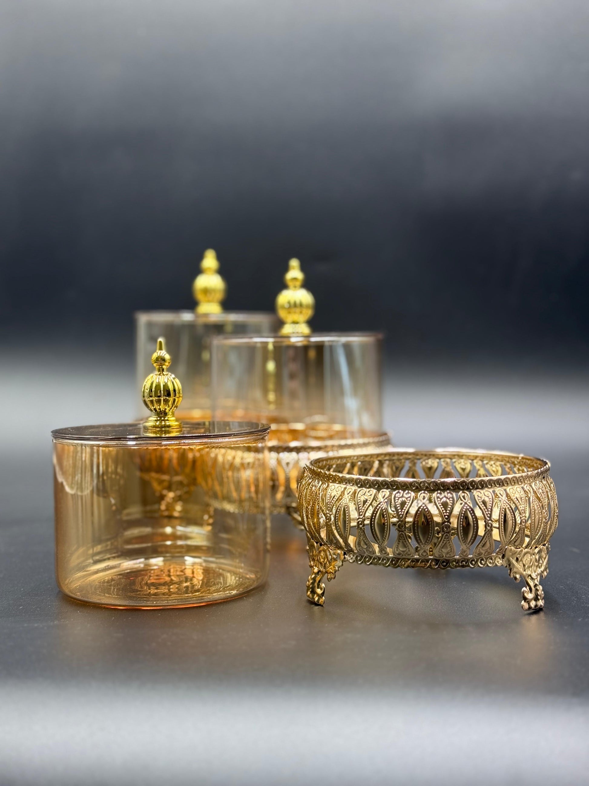 3 Pcs Golden Glass Storage Jars with Metal Stands✨