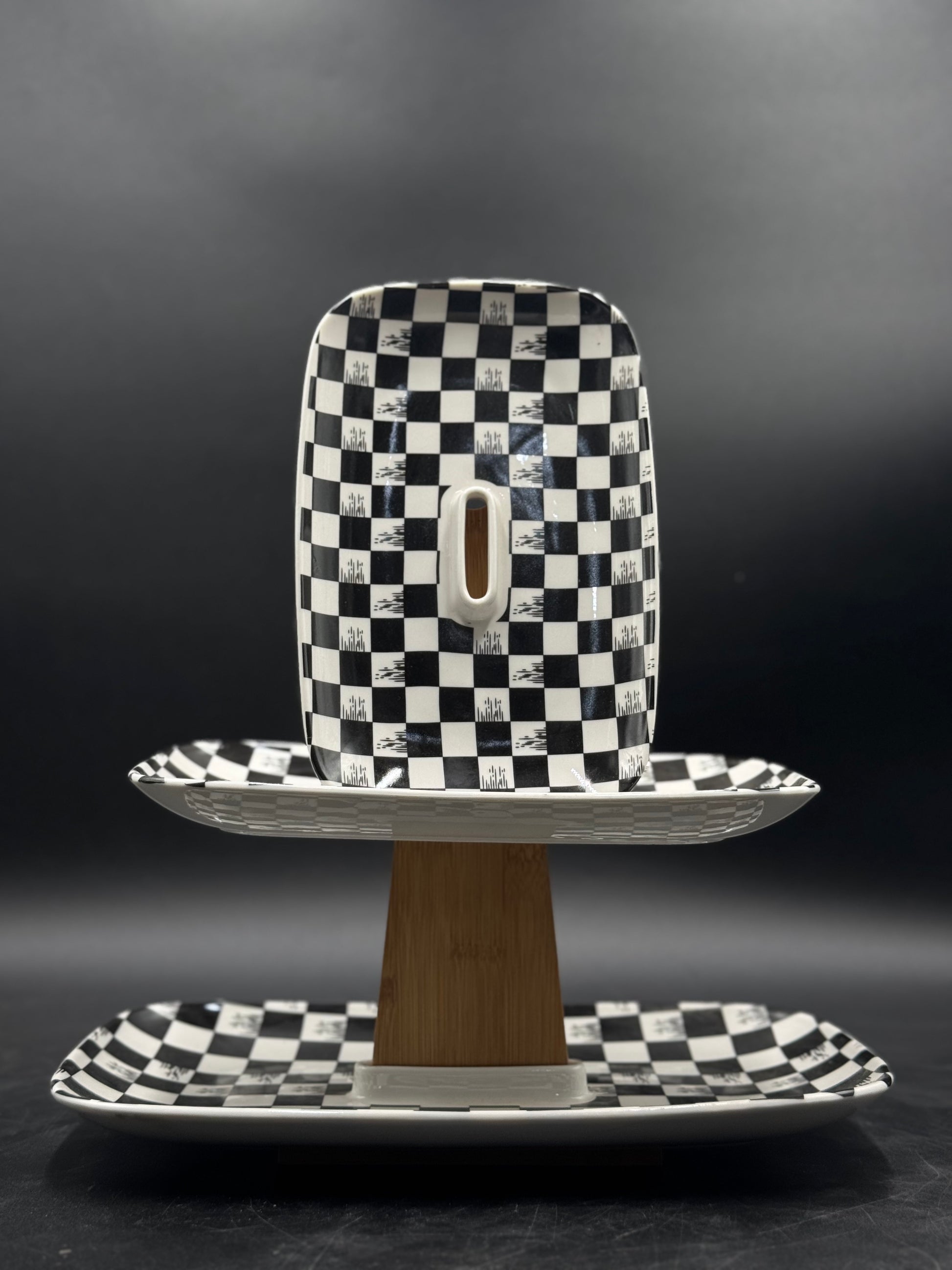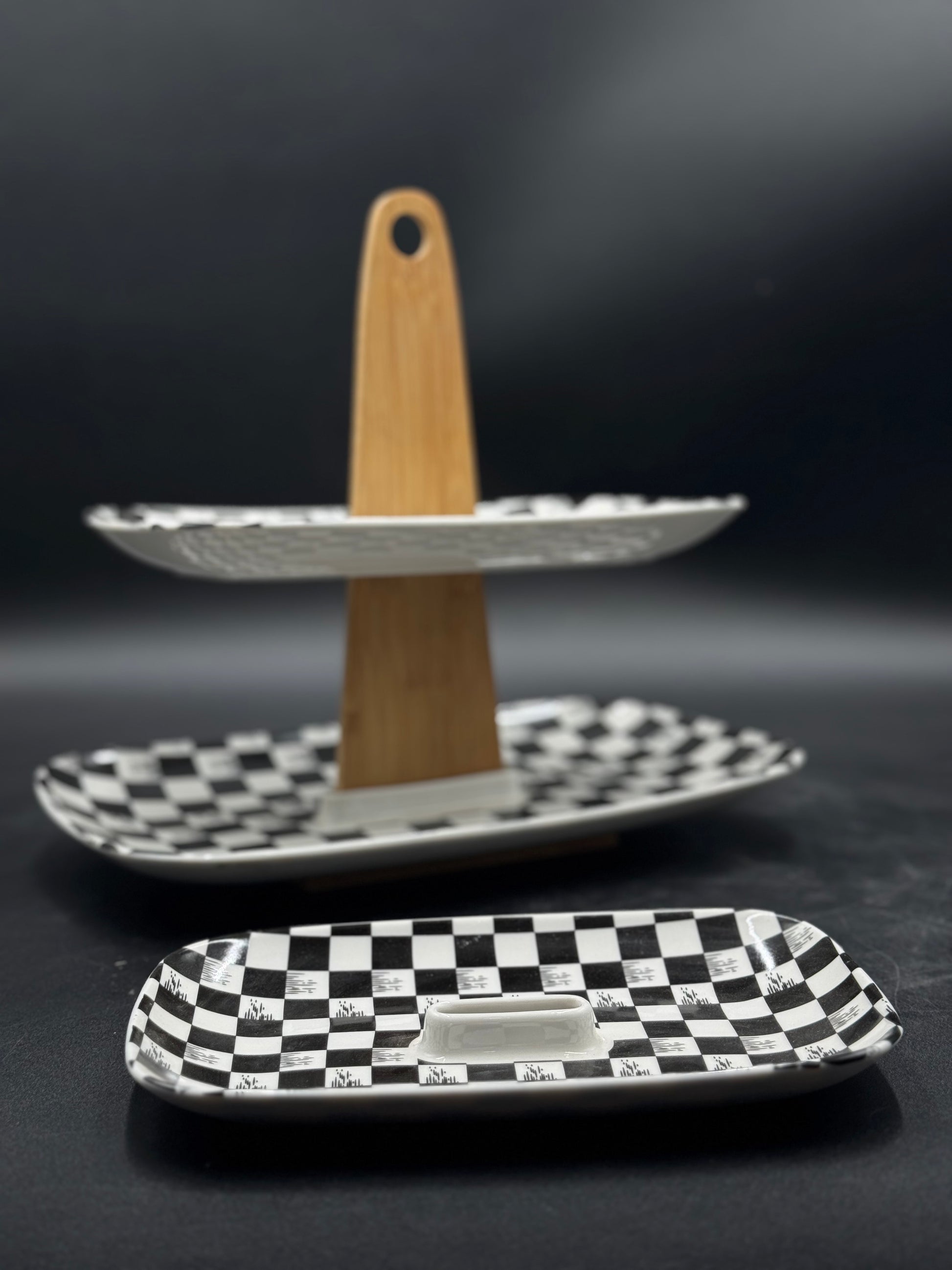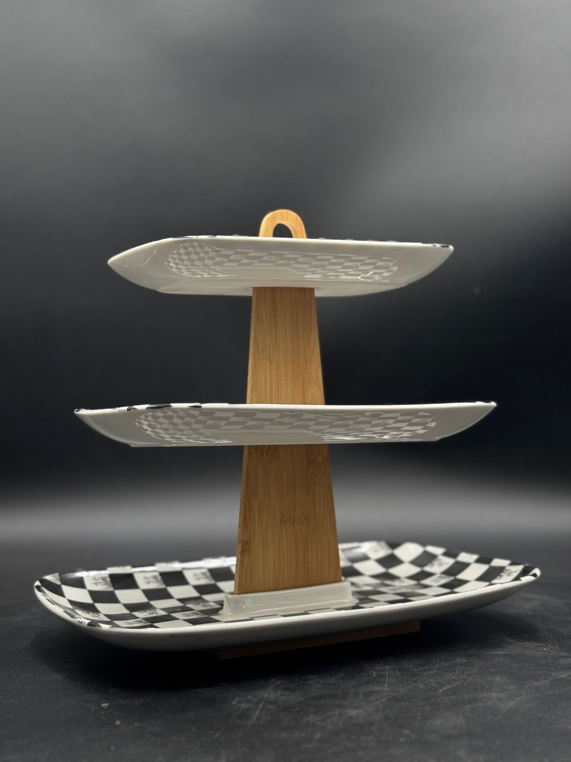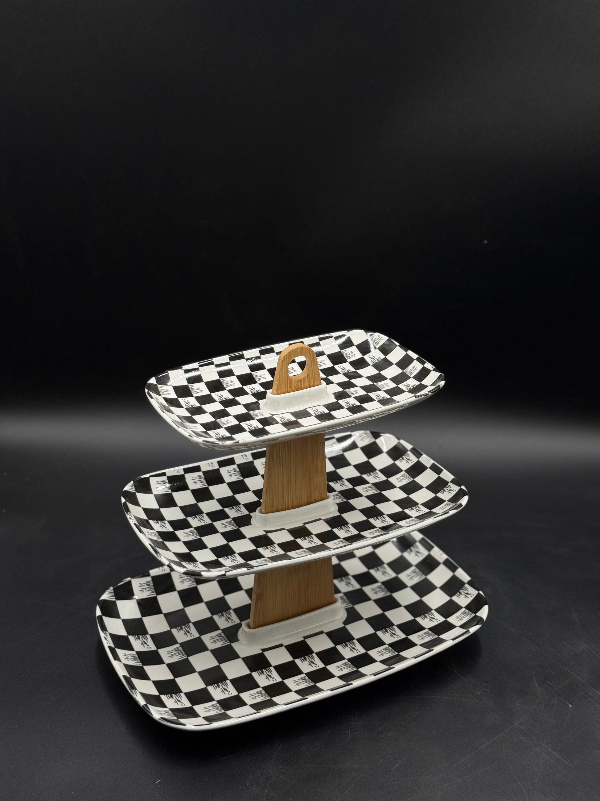 3 Tier Cupcake Serving Platter Set features a sleek black and white check pattern with a modern, urban flair ✨