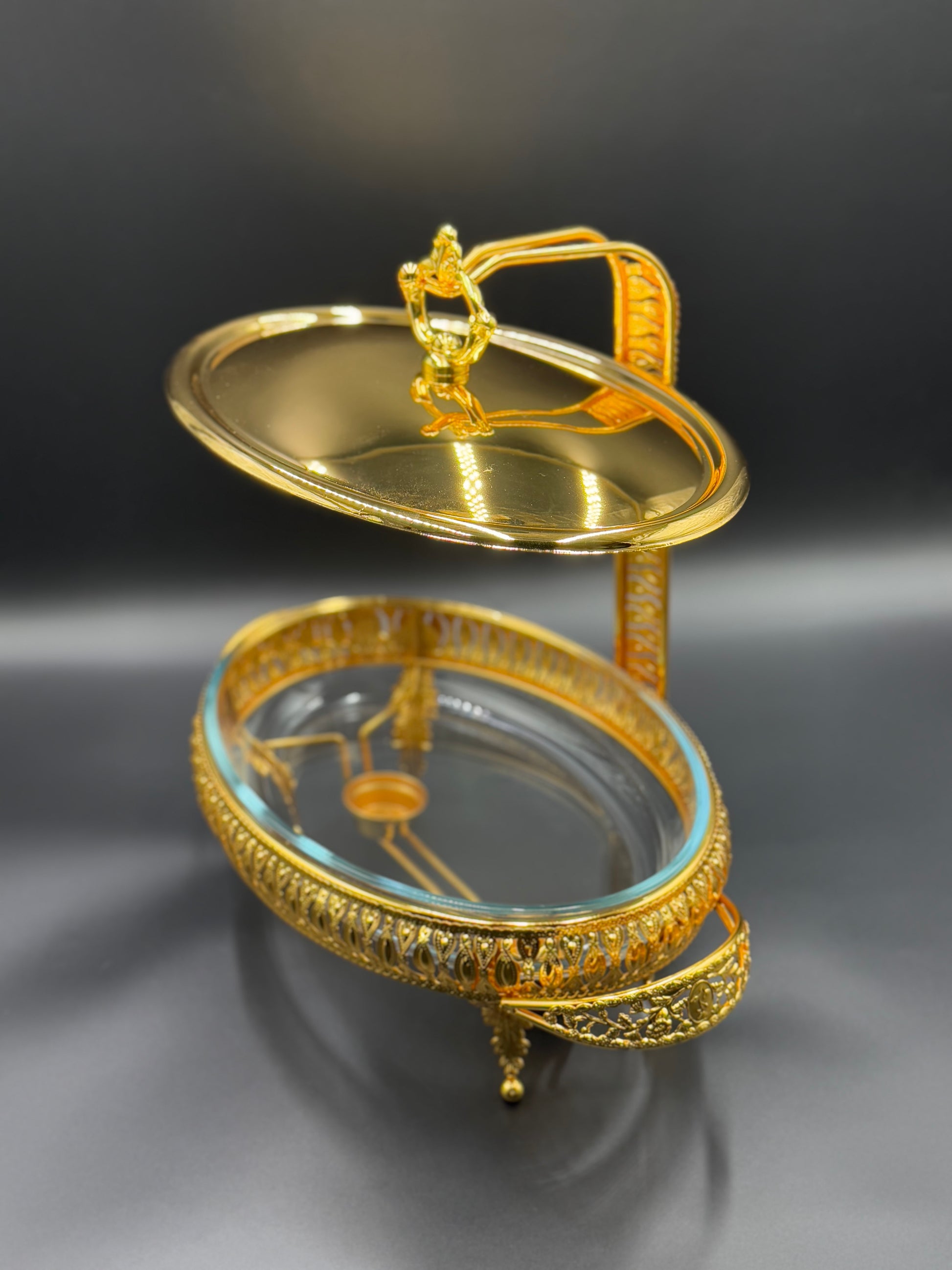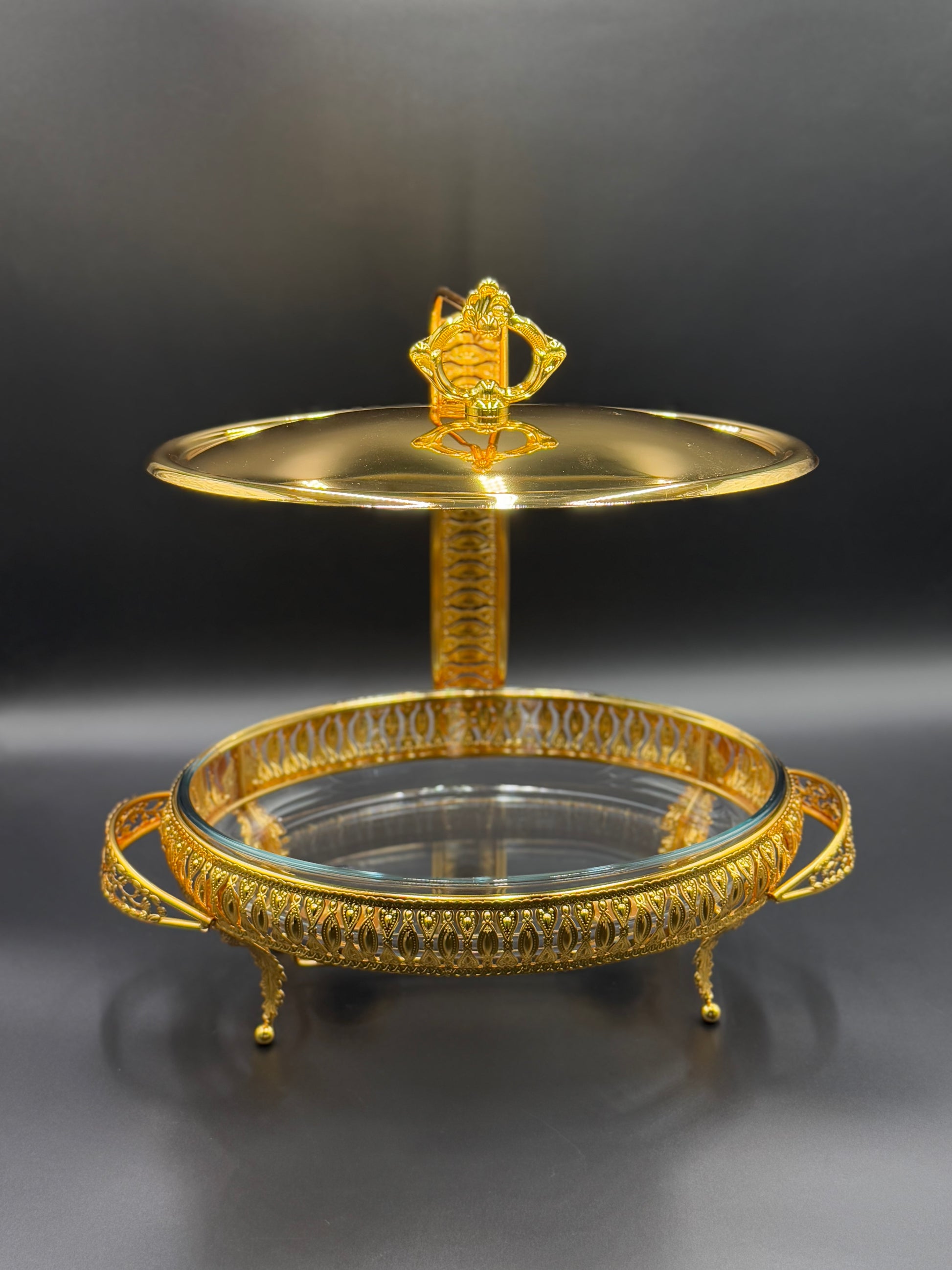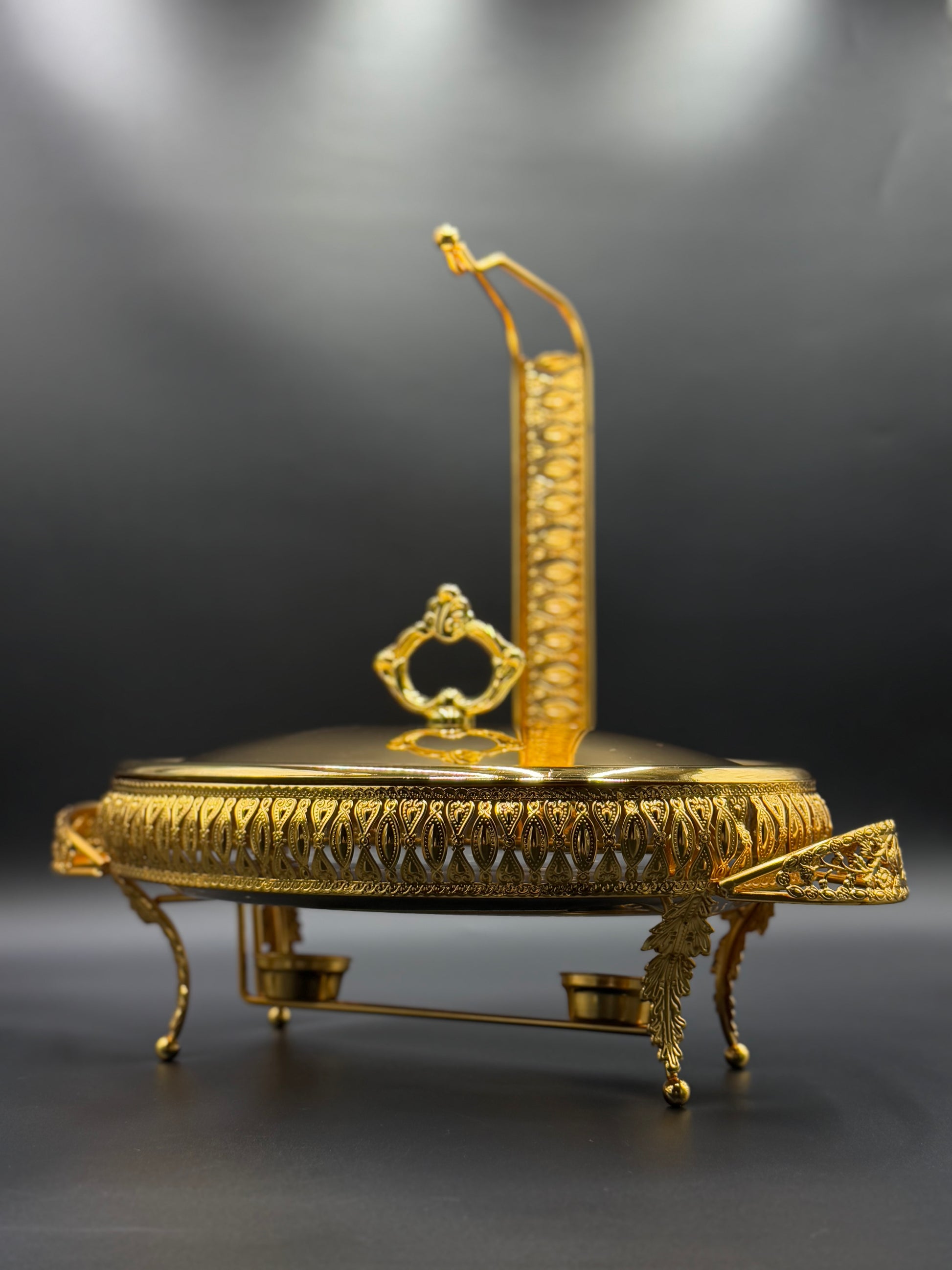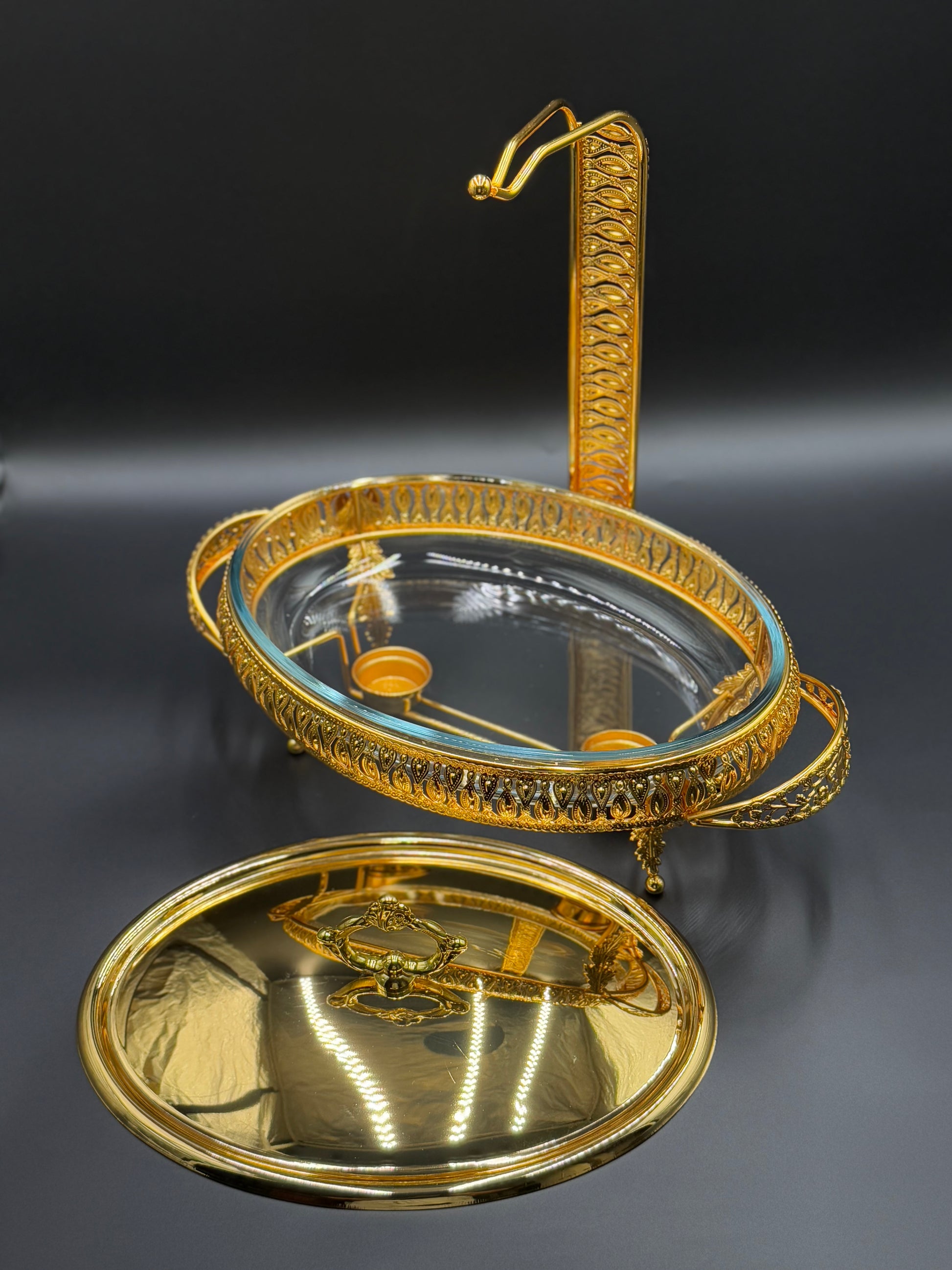 Serve in style with our 3 Litres Oval Golden Buffet Dish 🍽️💛. Crafted with a durable stainless steel body and an elegant hanging design, it comes with a fine thick glass warming dish to keep your meals fresh and warm. Perfect for weddings, dinner parties & luxury dining.