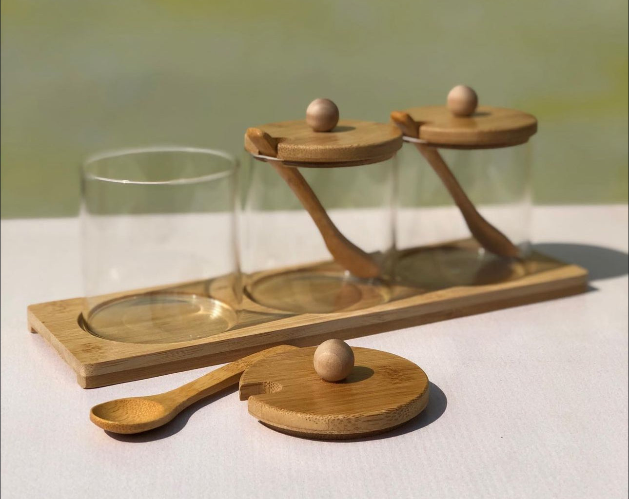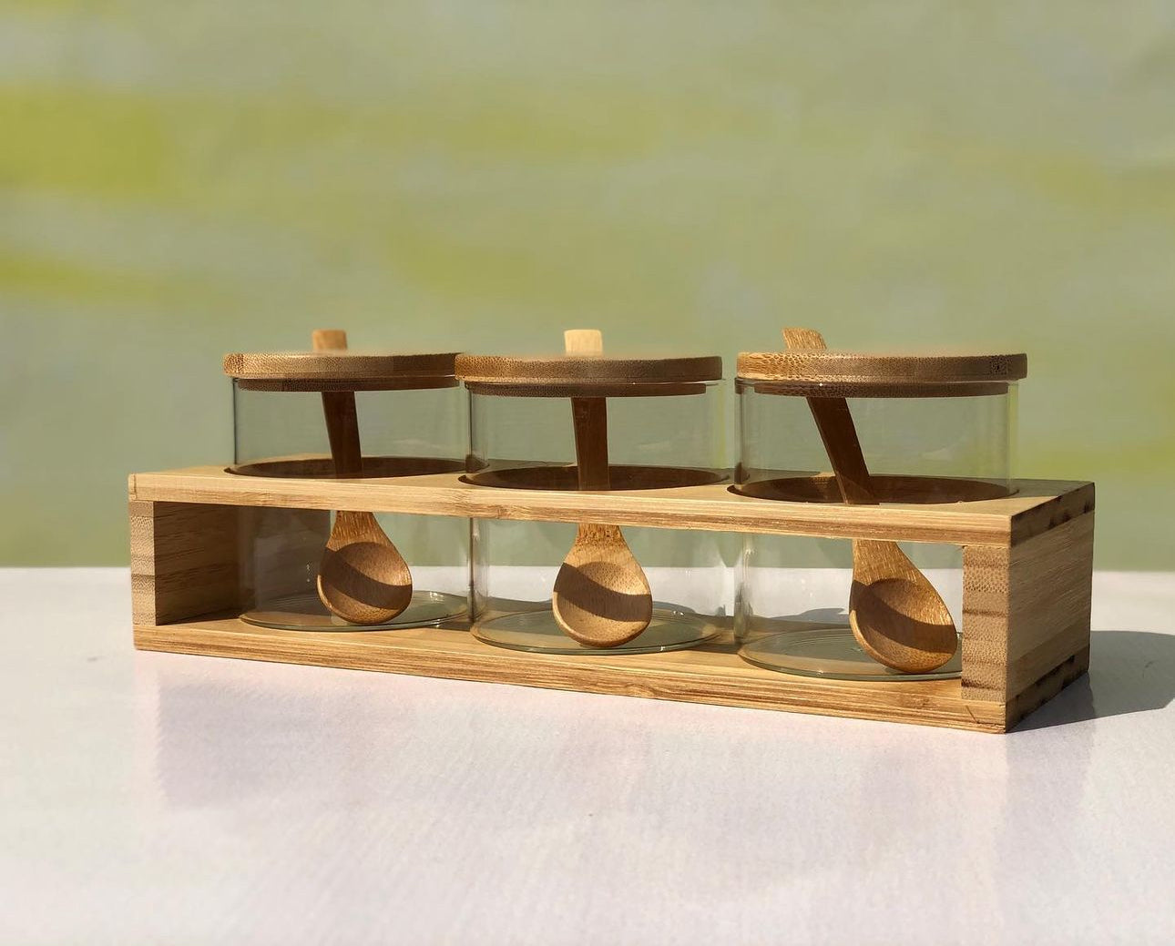 3pcs Glass Spice Jar Set with Wooden stand and spoons✨