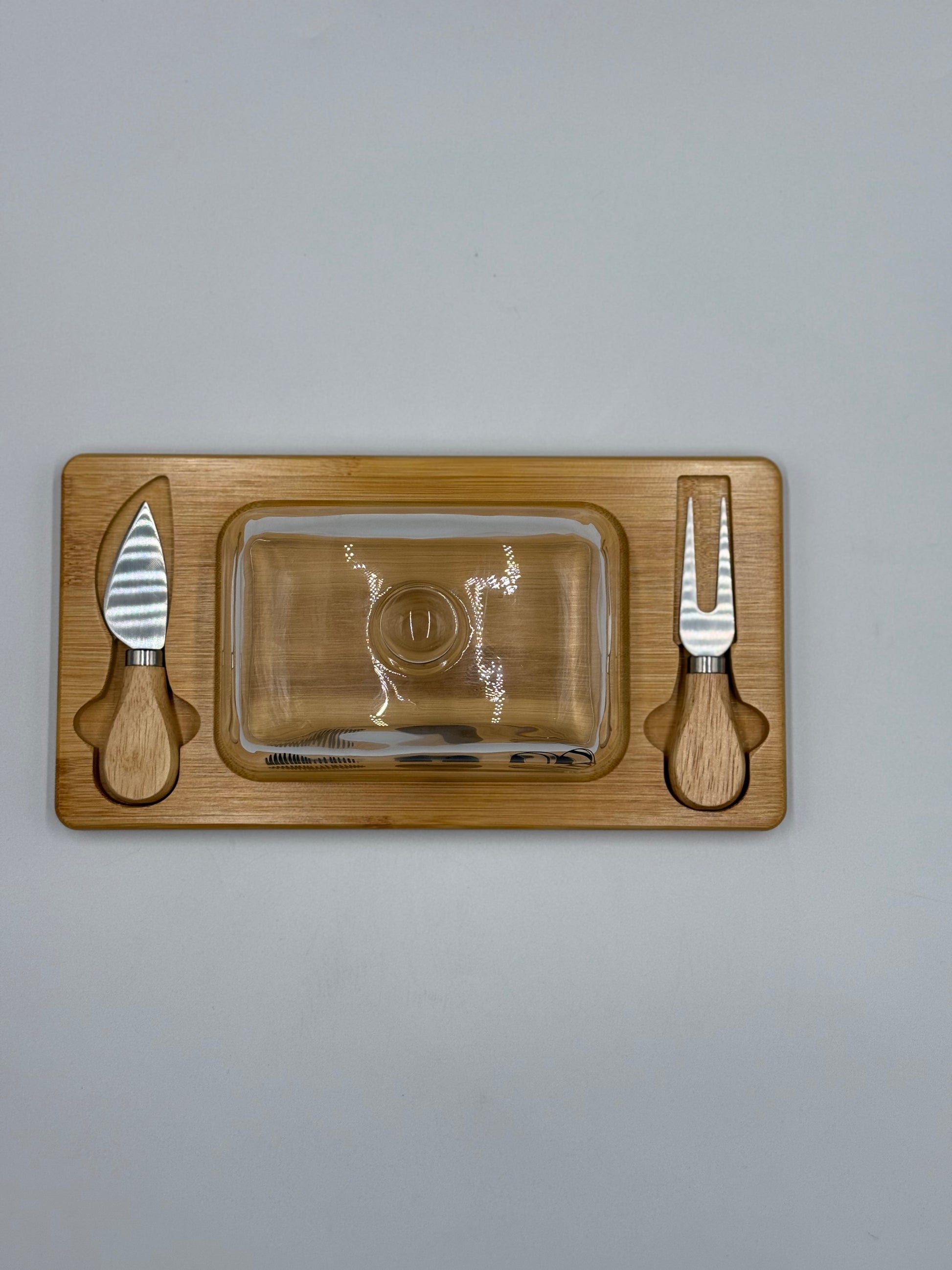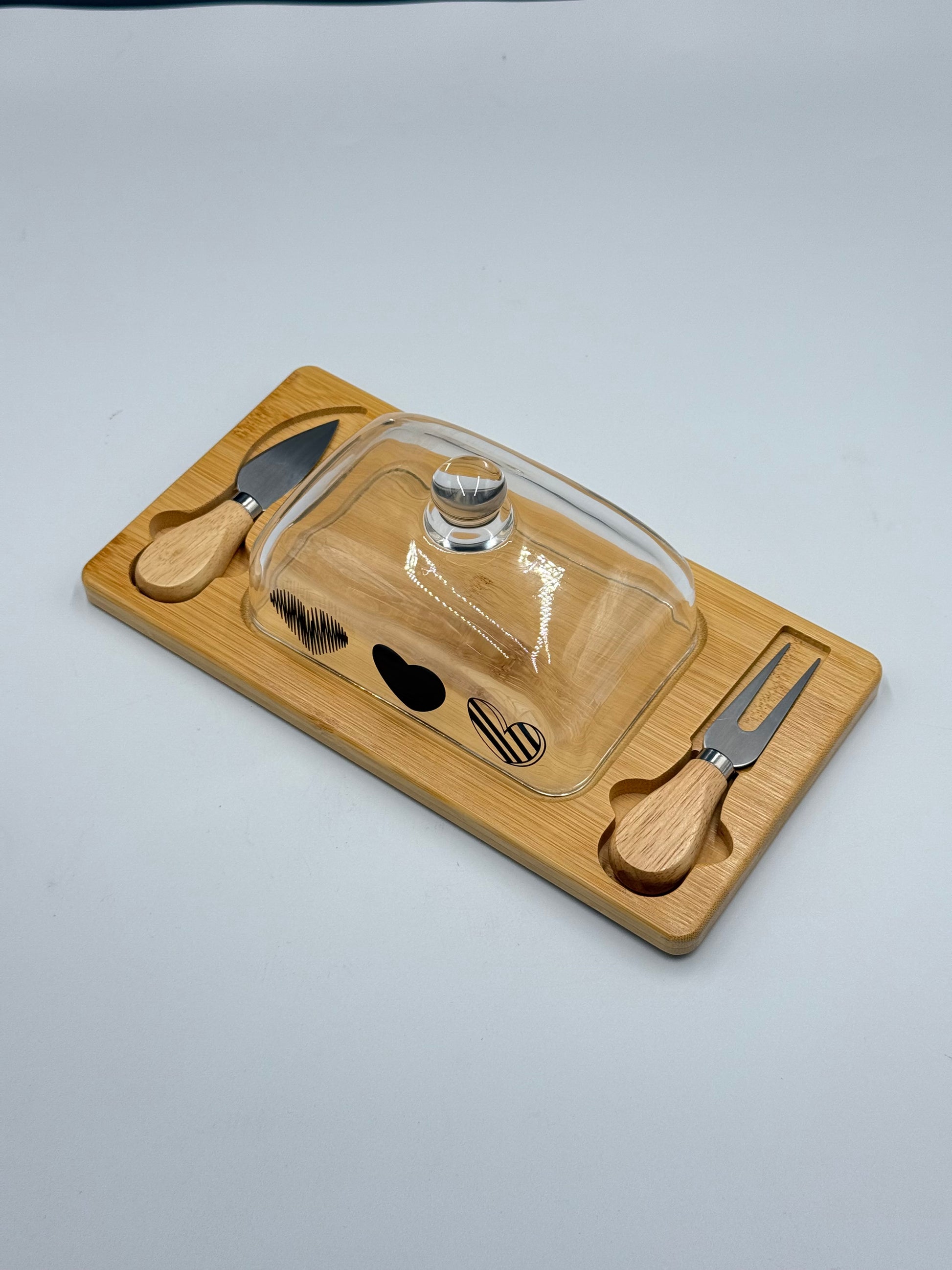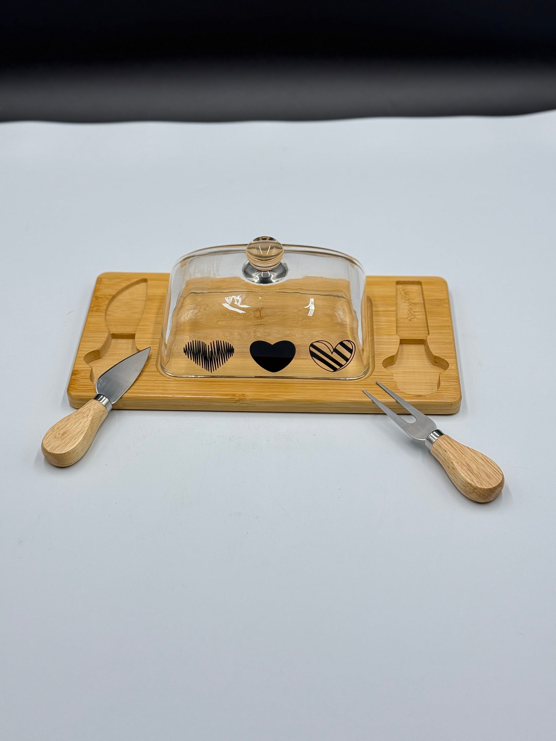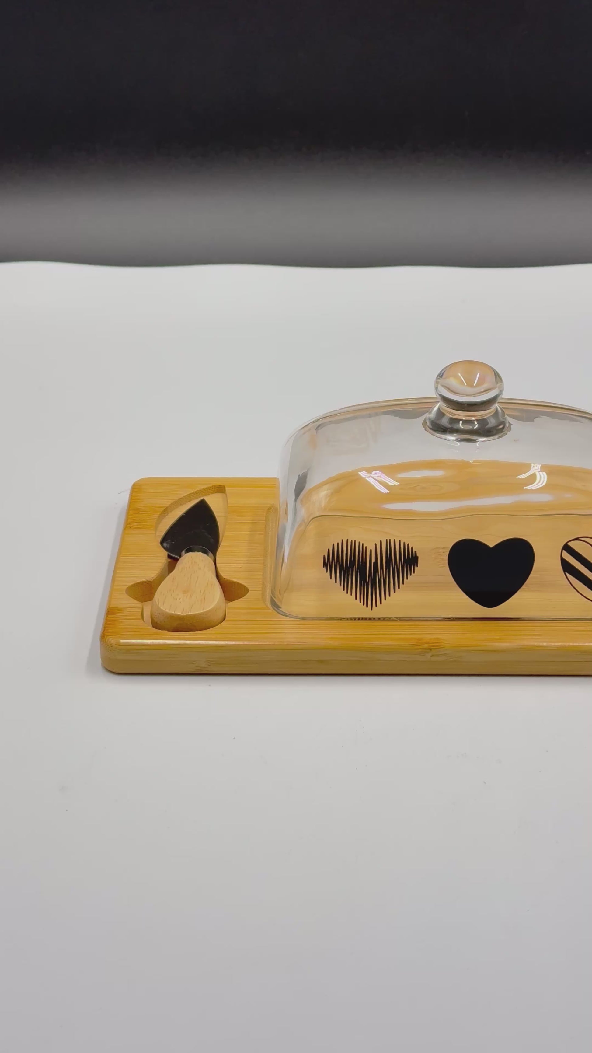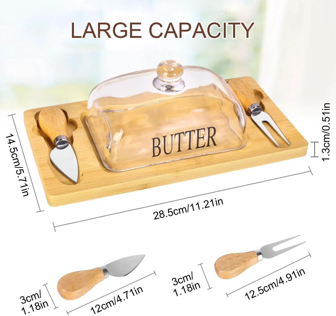 The 4 Pcs Rectangular Butter Dish with Lid features a sleek bamboo base and dome lid with heart designs 🧈✨