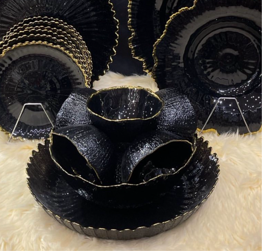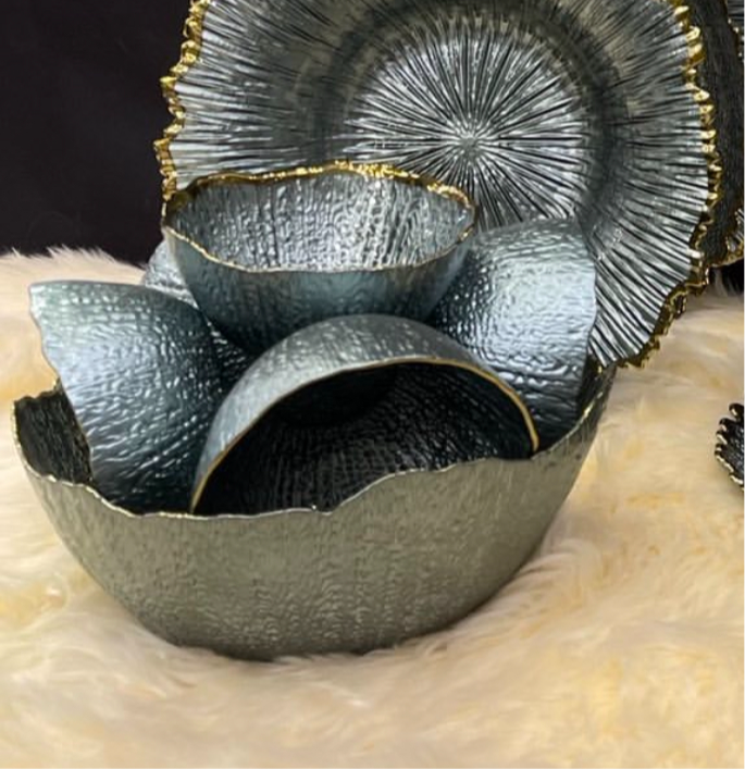 The Colour Glass Turkish Bowl Set features a stunning iridescent finish with Delicate Gold Rims. ✨🥣