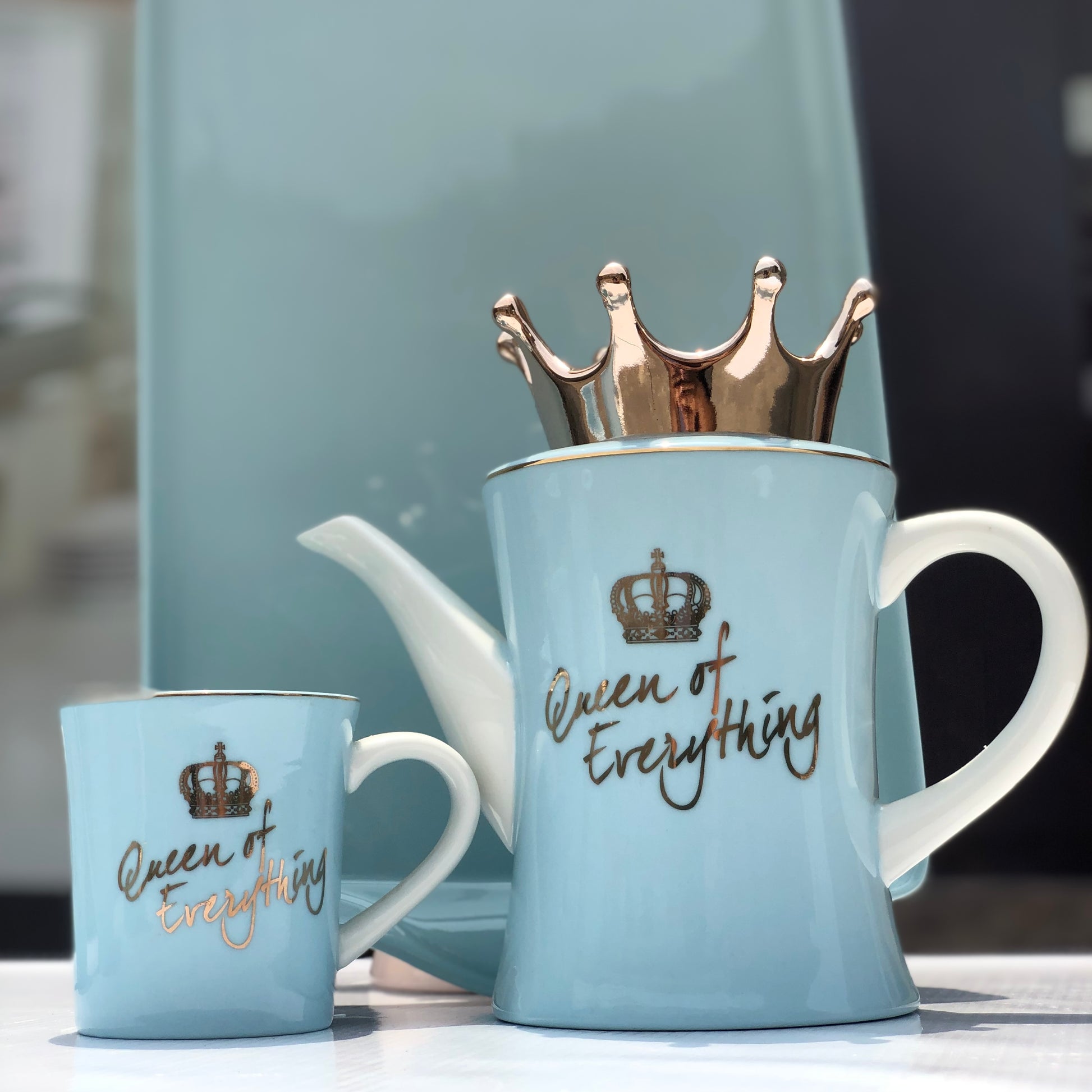 7 pcs Bone China Tea Set with Tray - “Queen Of Everything”