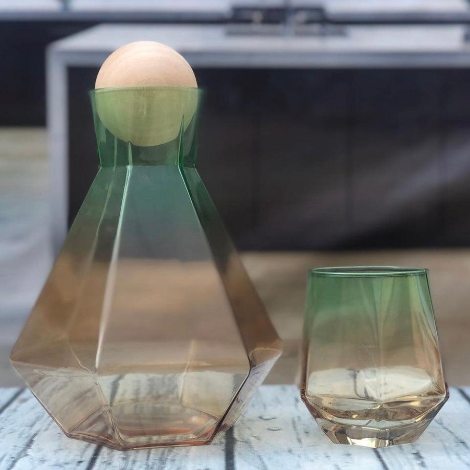 7pcs Green-Golden Turkey Glass Diamond Shaped Water Set