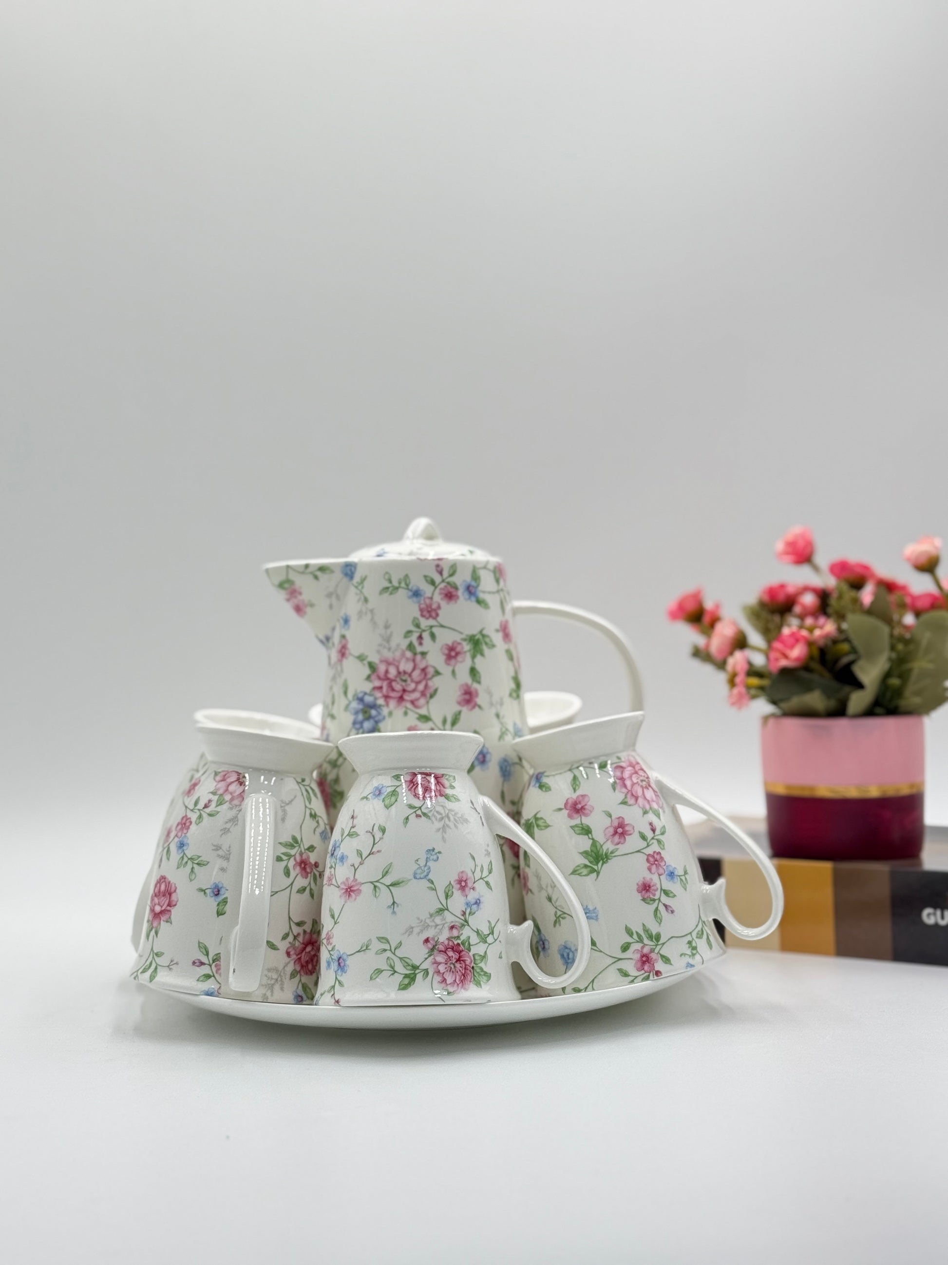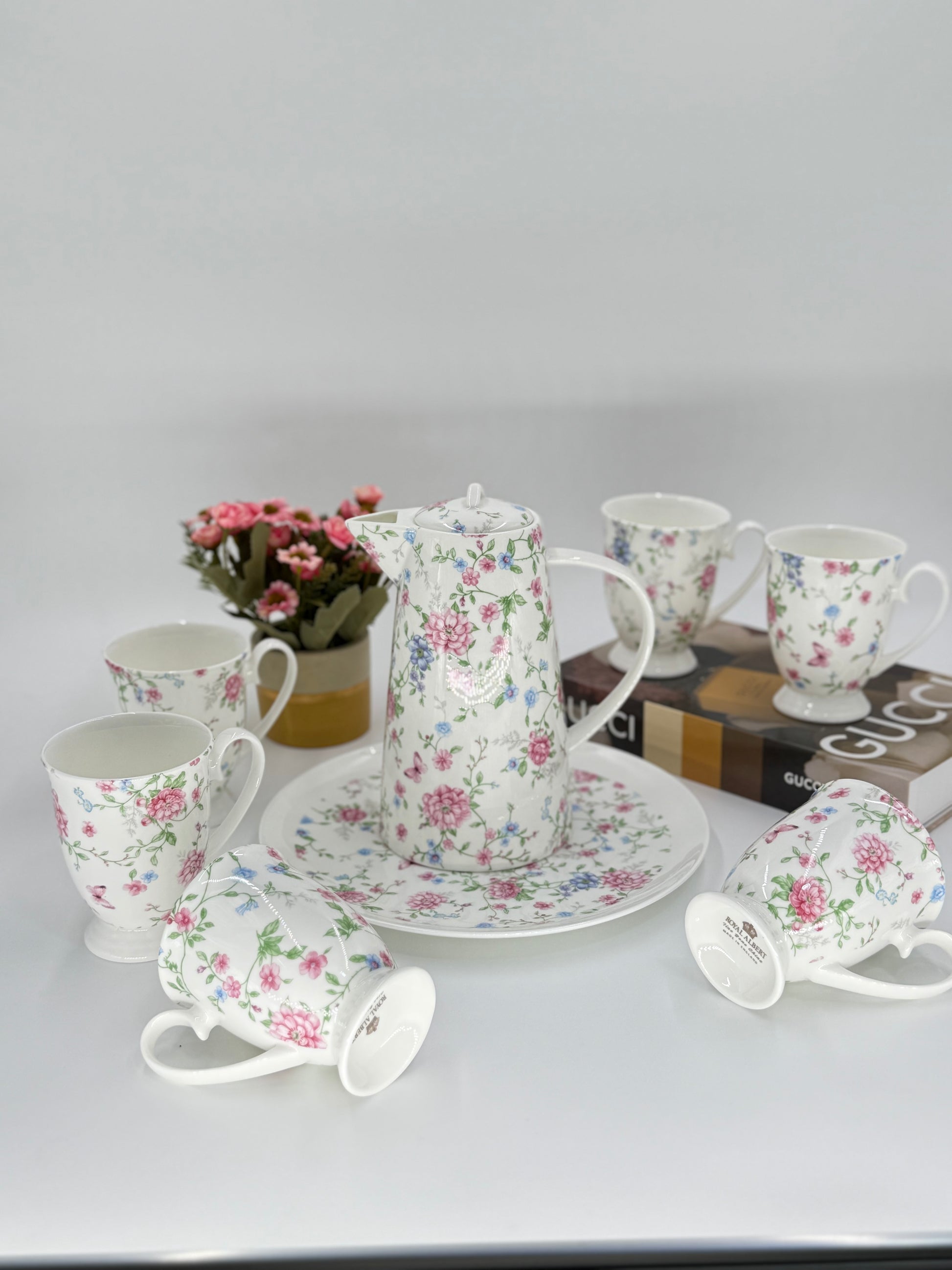 Sip in style with our 8 Pcs Royal Albert Tea Set featuring a Stylish Kettle 🫖, 6 Elegant Mugs ☕️, and a Round Serving Plate – all crafted from luxurious Super Bone China‼️ Perfect for those who love a touch of royalty in every pour✨
