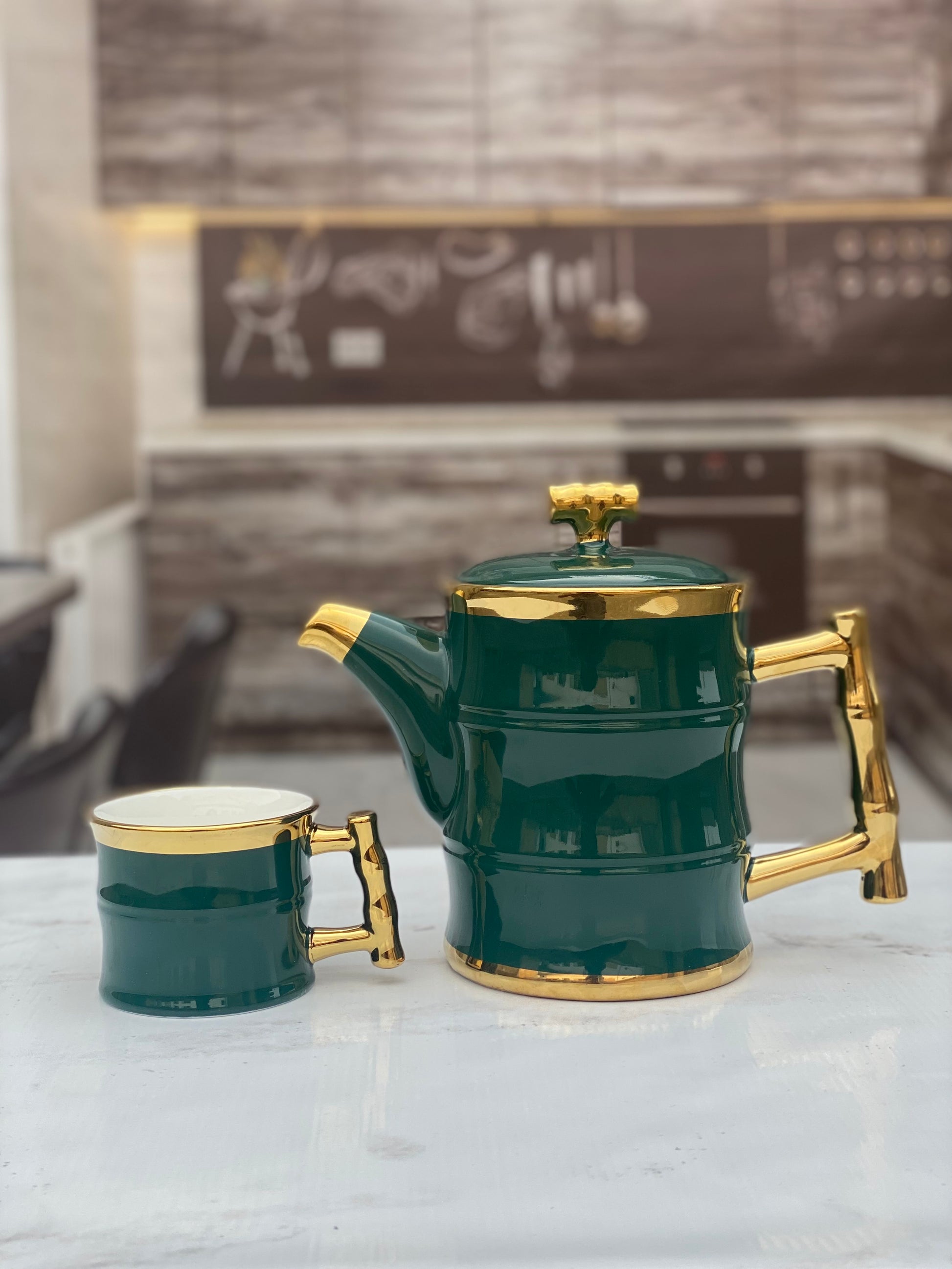 Experience sophistication with our Elegant 8-piece Tea Set, adorned with 24K gold-plated outlines. Crafted with premium quality, this exquisite collection includes a wooden stand, elevating your tea moments to new heights of luxury.