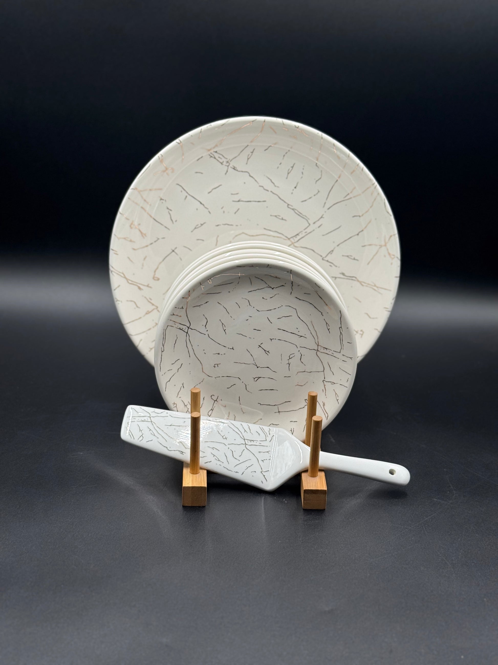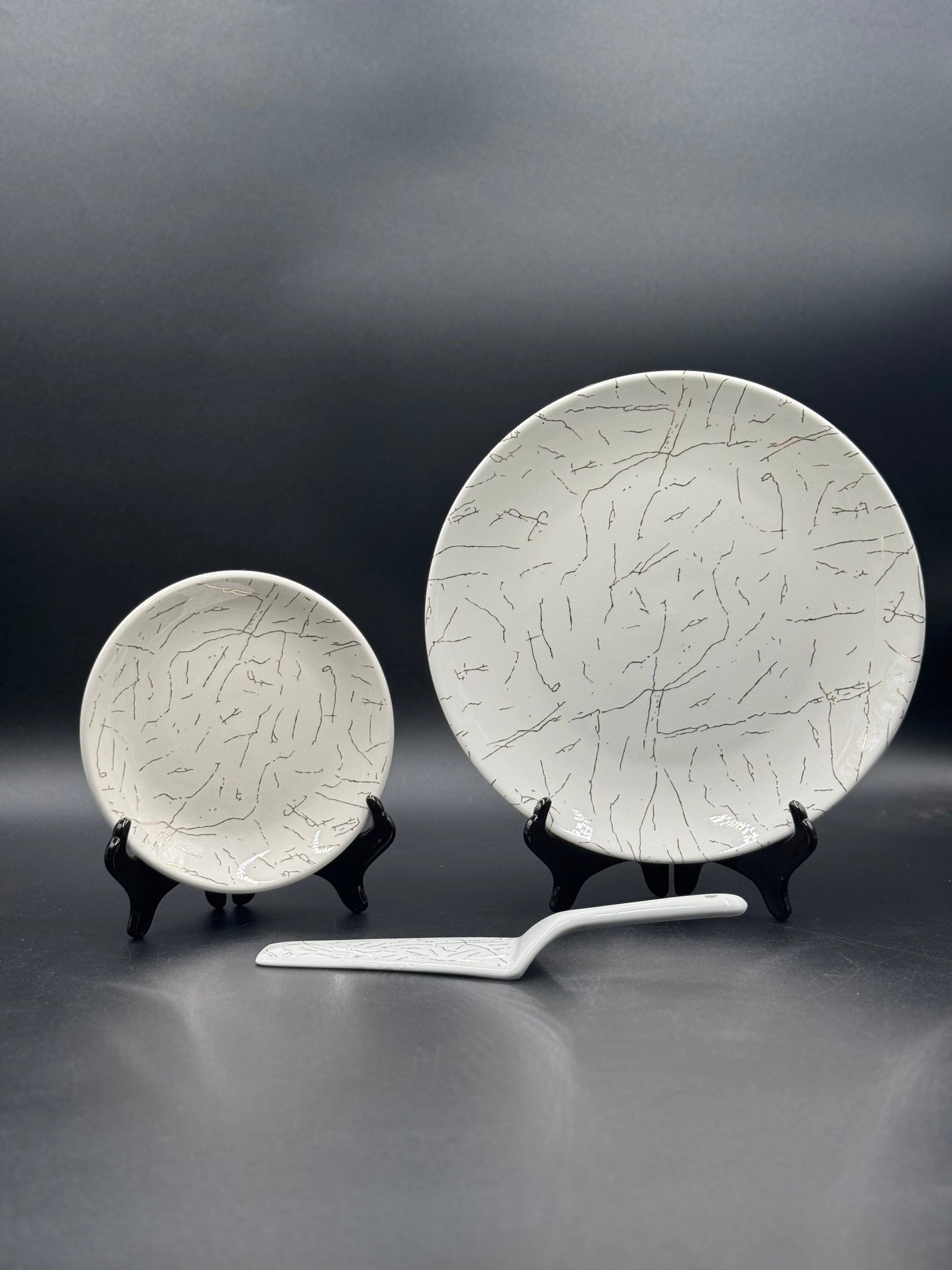 The 9pcs Marble Cake Set features a stylish gold linework on white base 🎂✨