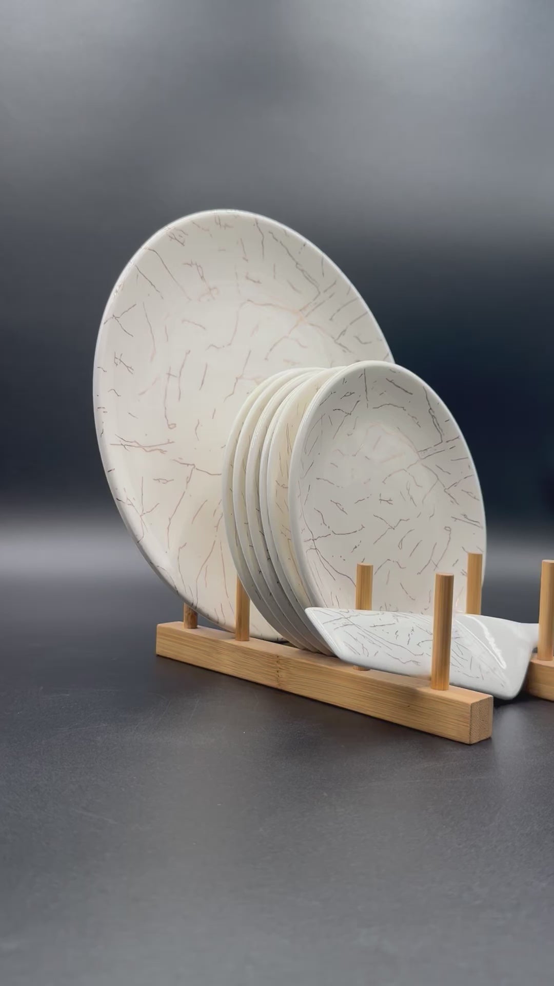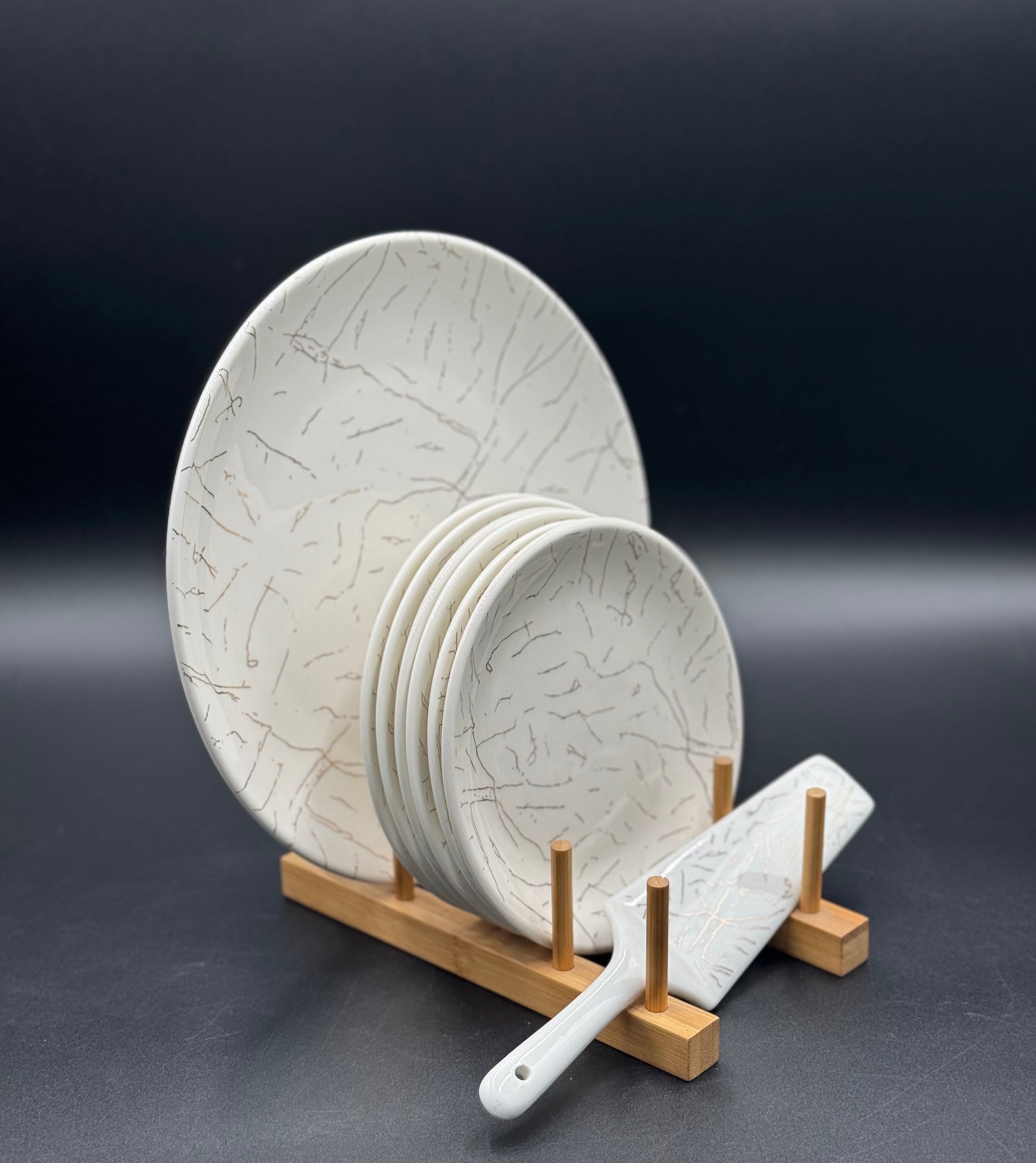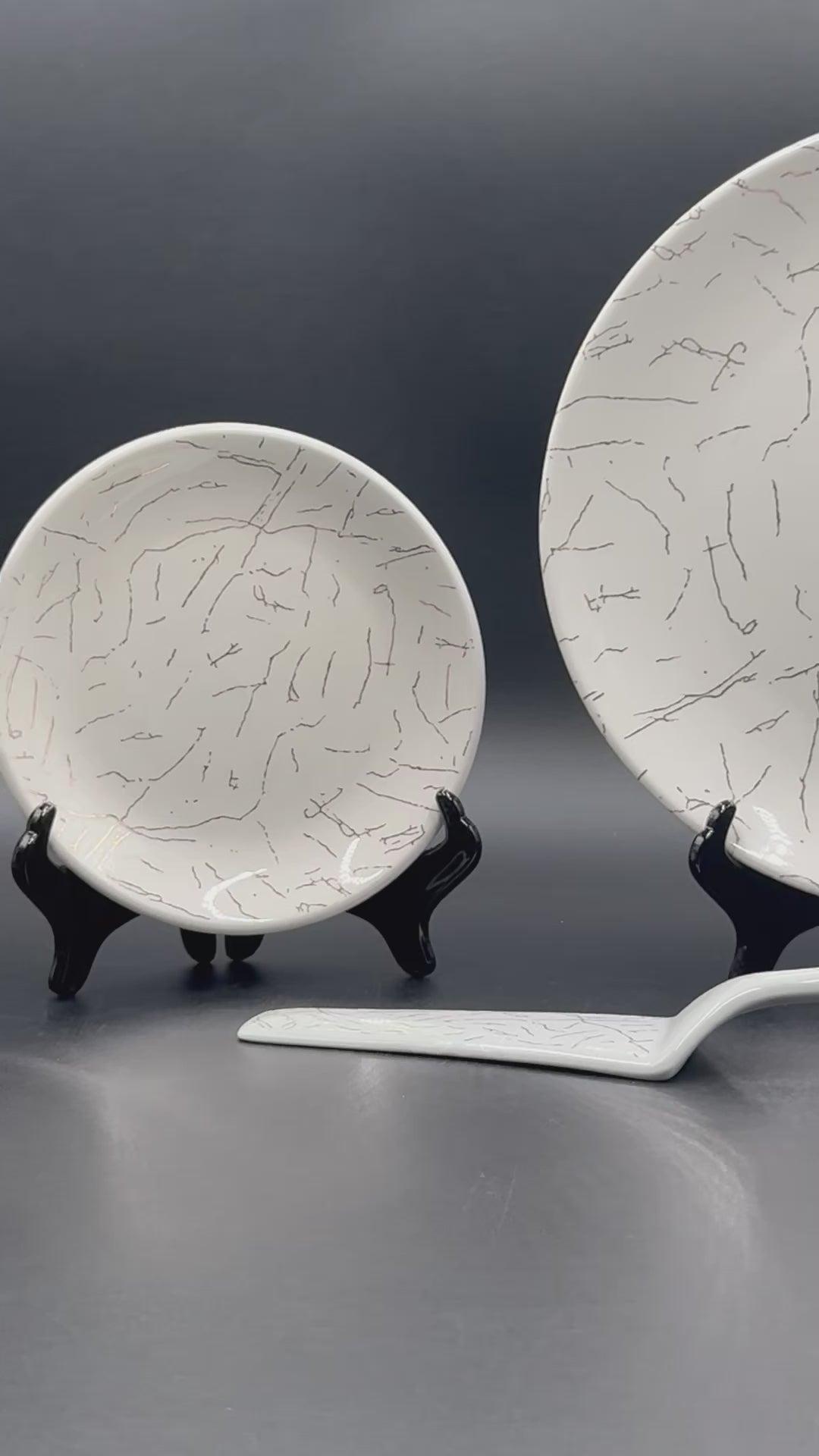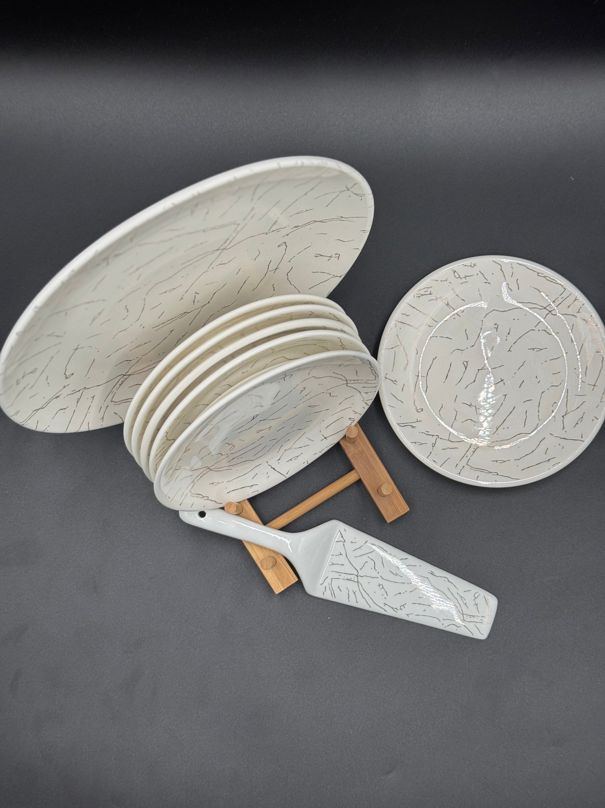 9 Pcs White Marble Design Round Cake Plate Set with Stand 🎂✨