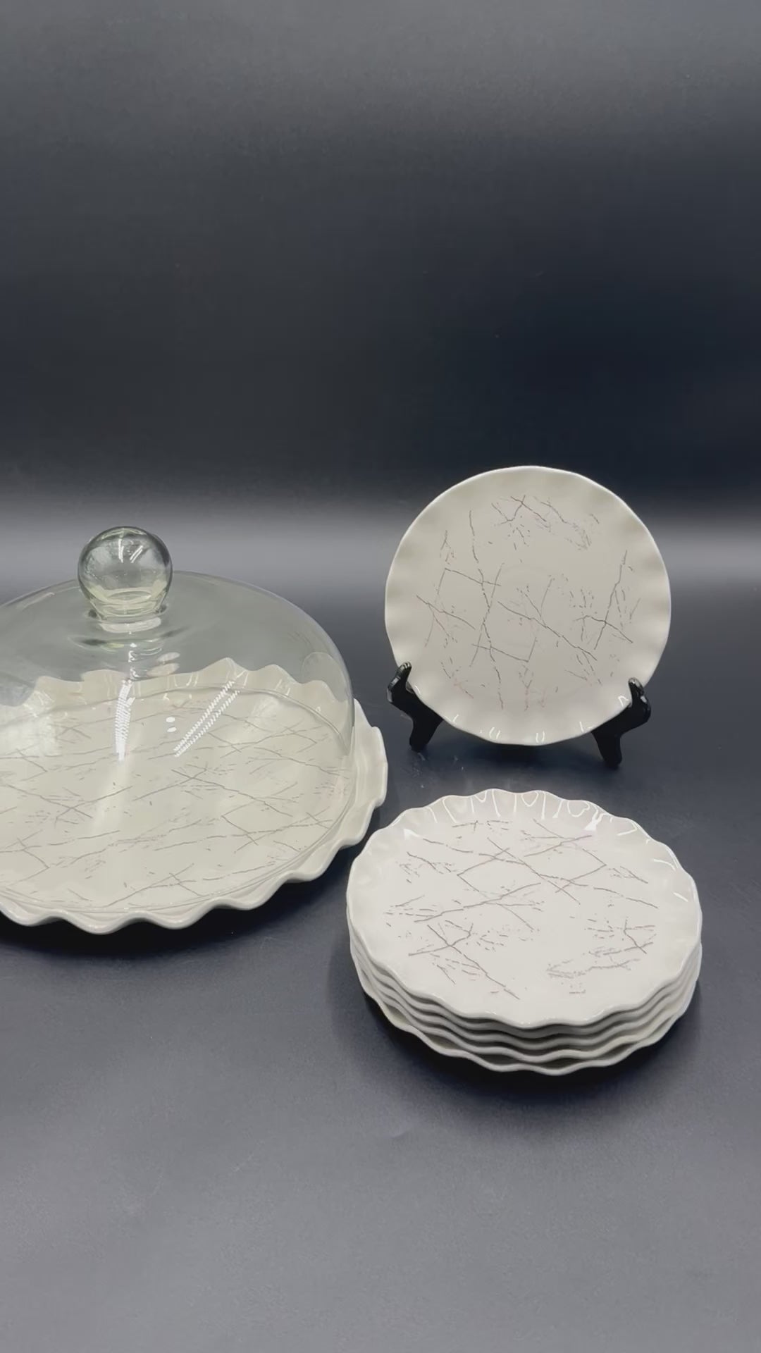 9 Pcs White Marble Design Ceramic Cake Dish with Serving Plates πβ¨