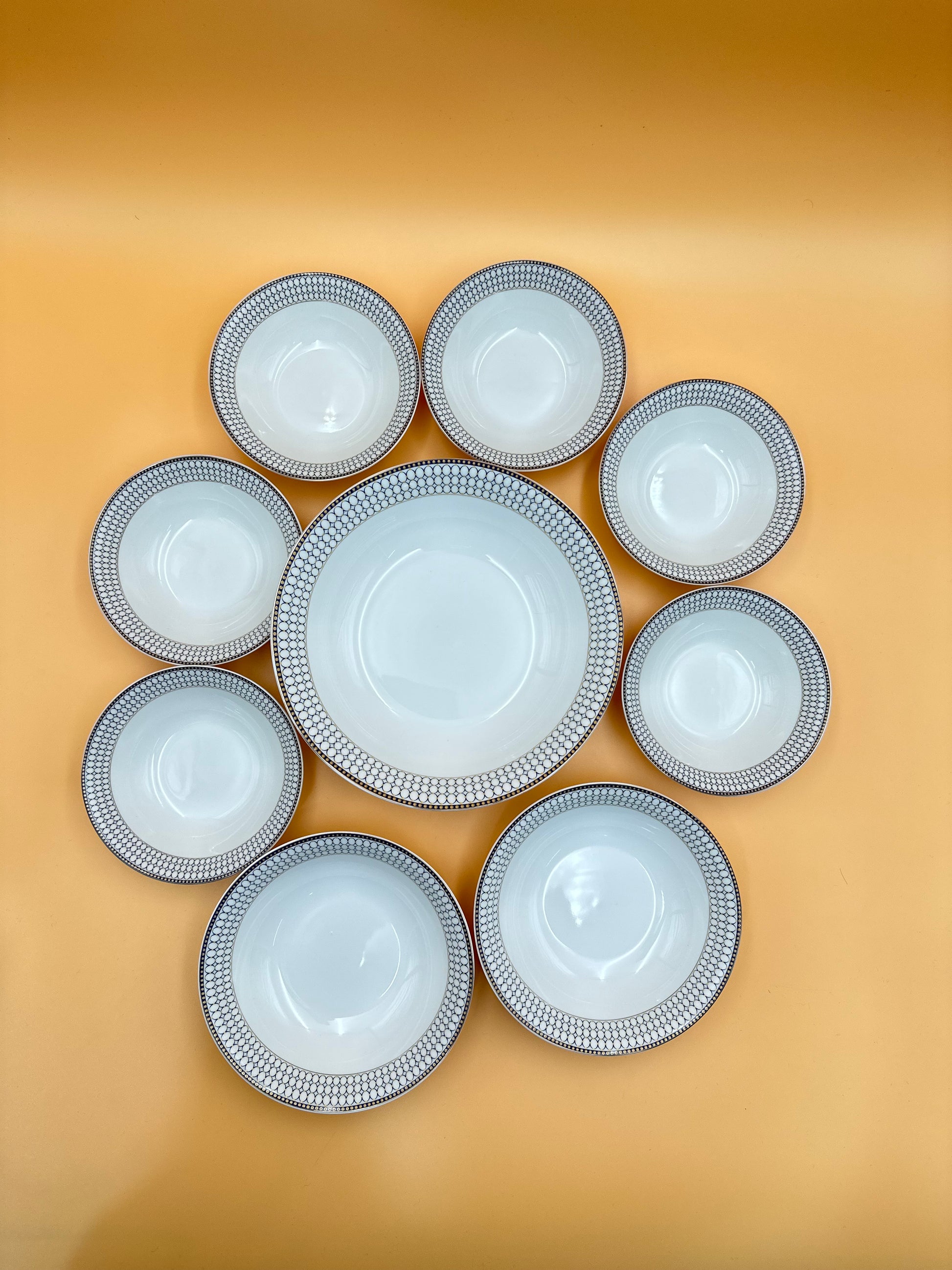 🌙 Elevate your Ramadan gatherings with our exquisite Original New Century USA 9pcs porcelain bowl set! Featuring platinum and gold decoration, it includes: