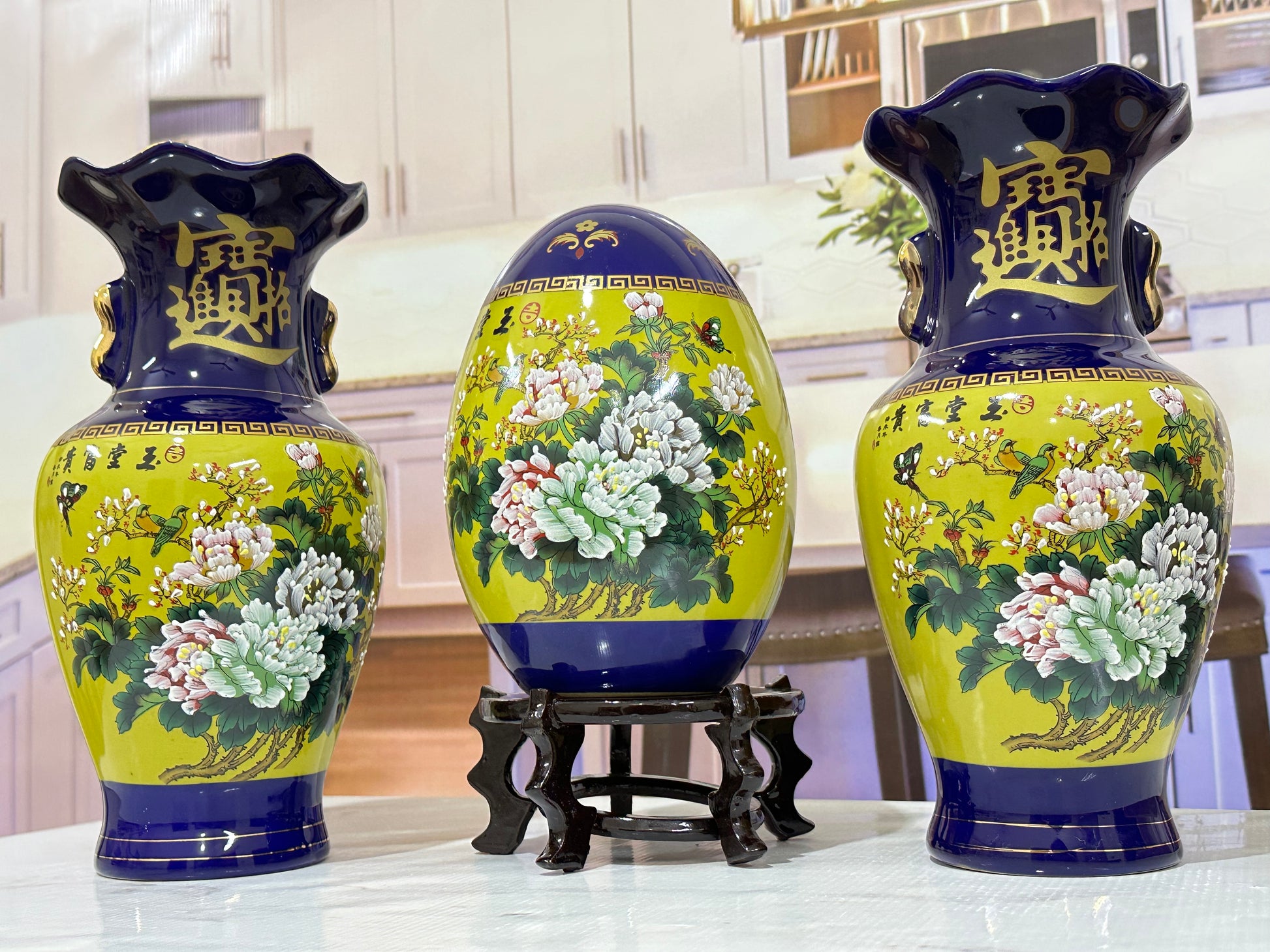Step into the past with our Antique Jingdezhen 3pcs Handmade Porcelain Vases Set. 🏺✨ This exquisite ensemble includes two bottles on the left and right, standing at about 33 cm high with a maximum belly diameter of about 15 cm. The middle egg bottle and base reach approximately 32 cm in height, with a maximum belly diameter of about 18 cm.