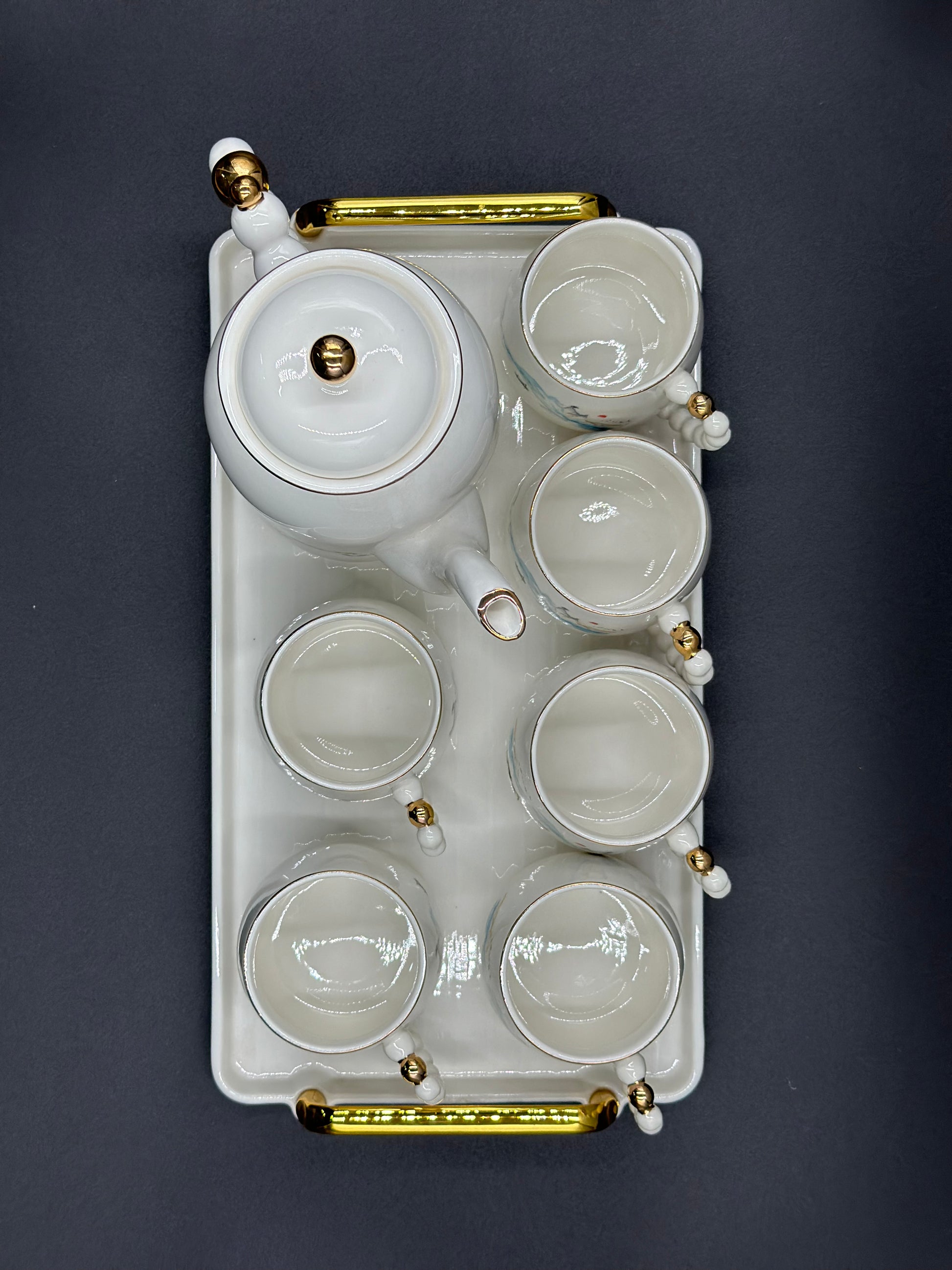 Experience elegance with our 8 Pcs Tea Set with Tray, beautifully packed in a gift box. Revel in the enchantment with: