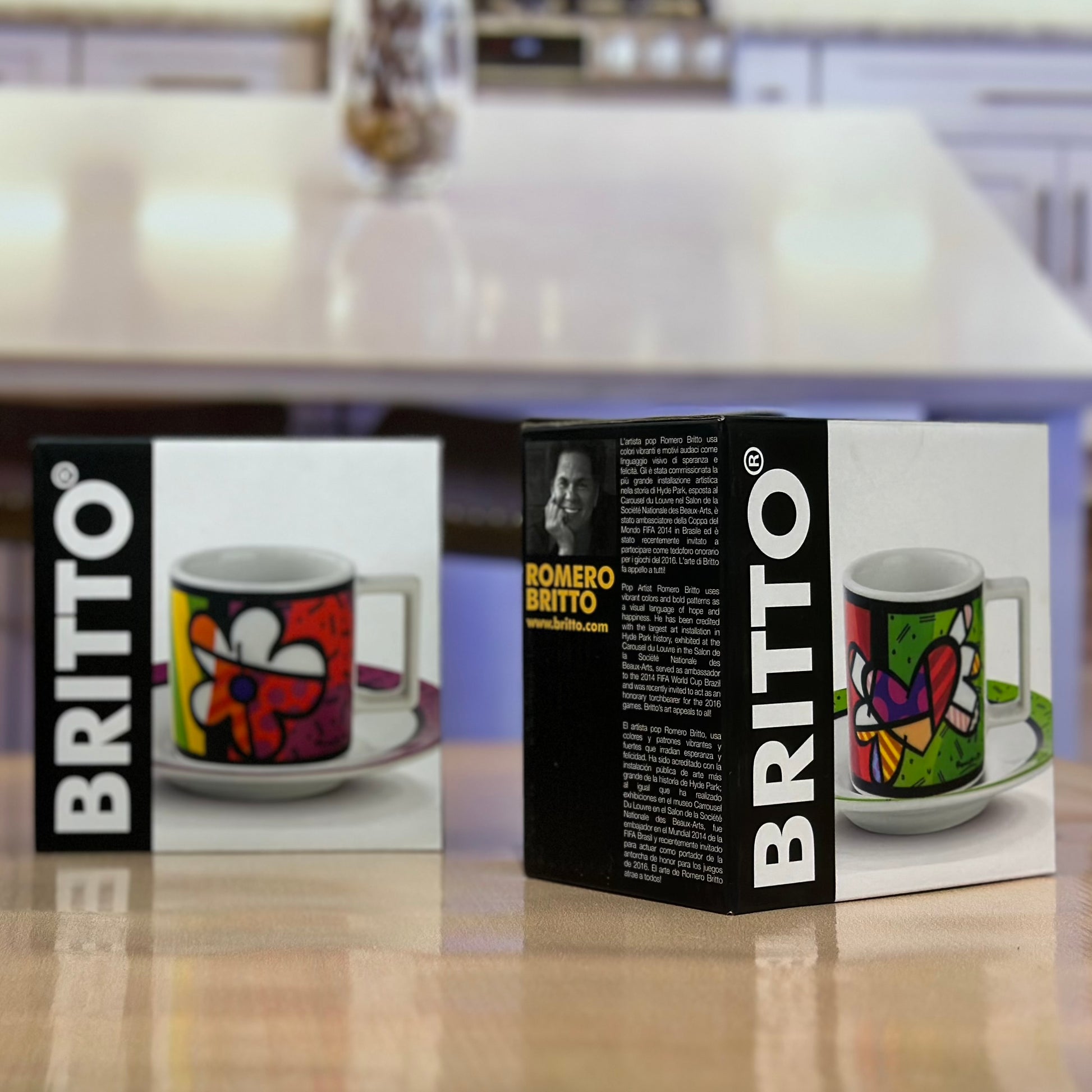 Original USA BRITTO Expresso kehwa cup with saucer. This product with an exclusive pop design is entirely made of porcelain and belongs the Britto’s collection that has been created to make your table unique.