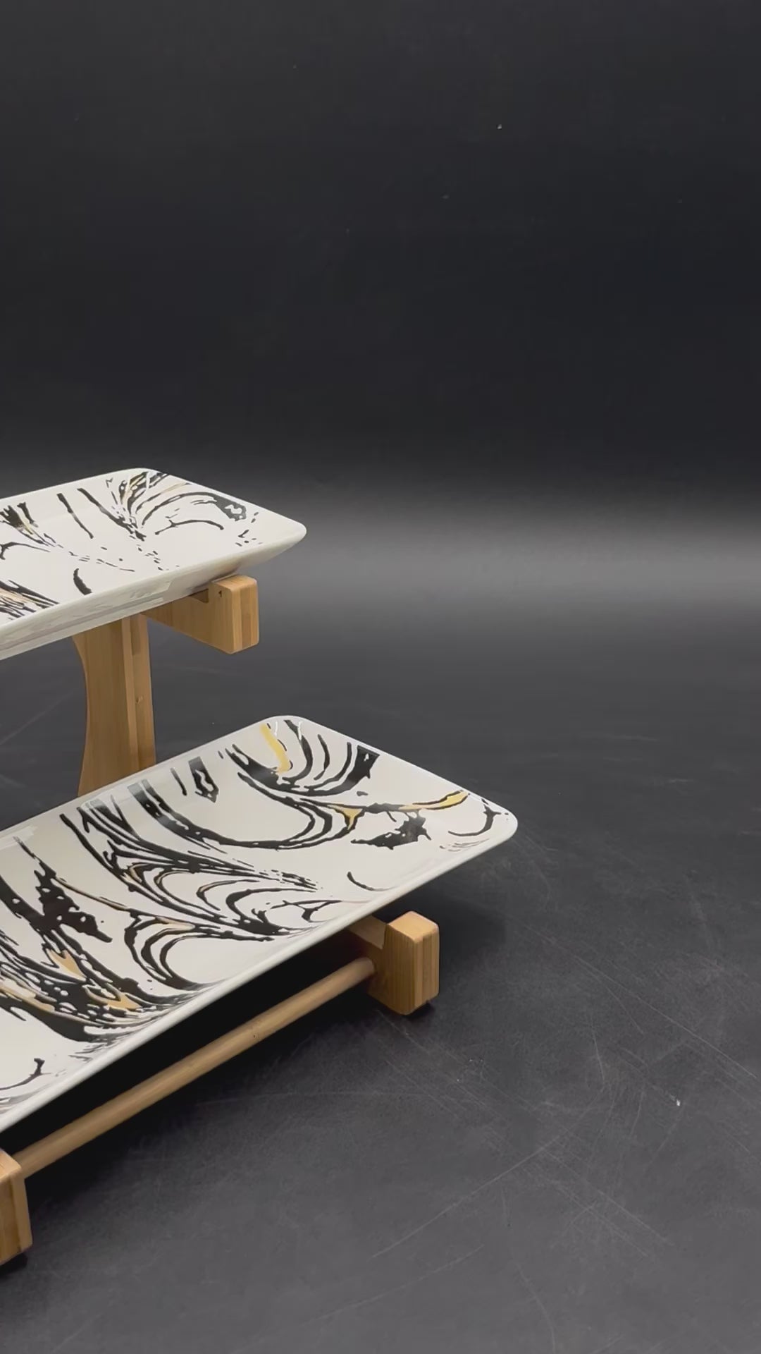 2 Tier Serving Tray Set features a sleek black and white abstract pattern with a modern and urban style ✨