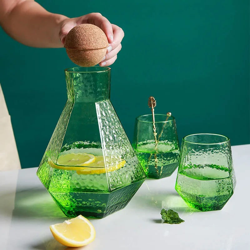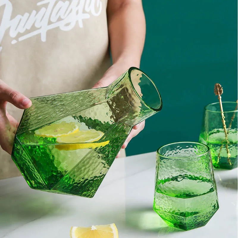 7 Pcs 3D Reptiles Turkish Green Glass Diamond Shaped Water Set 💎