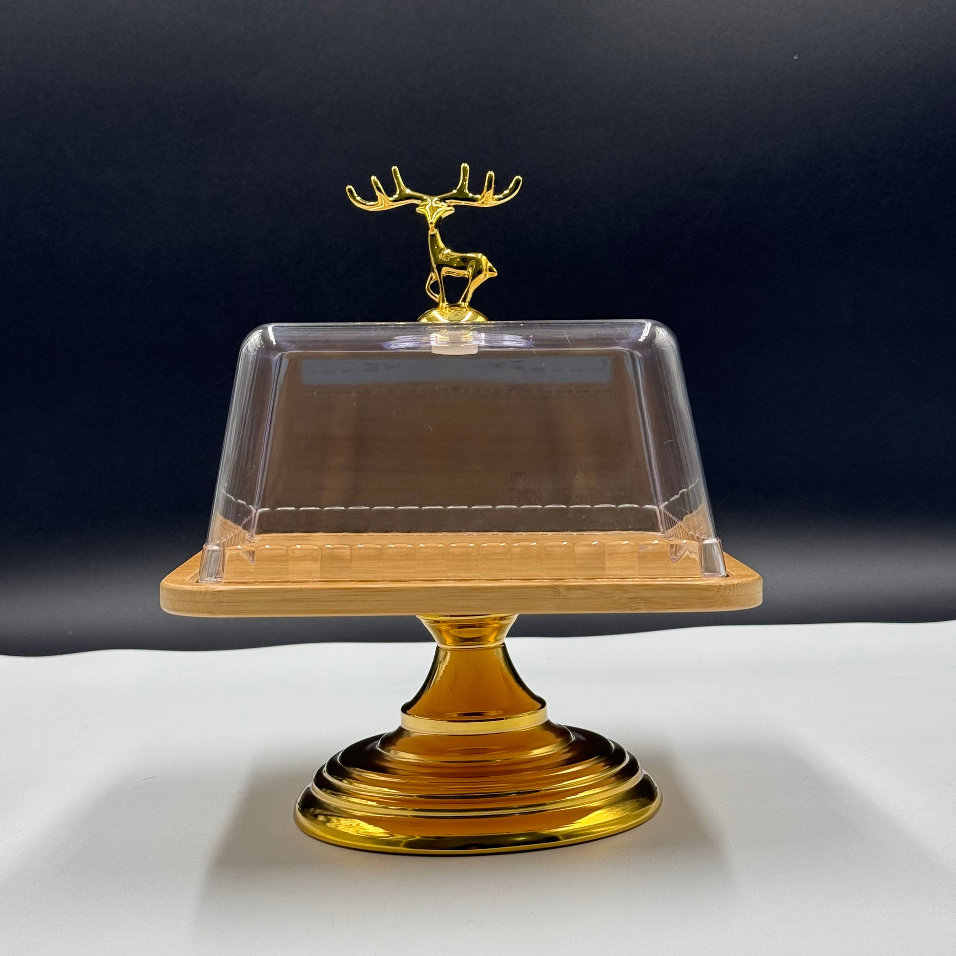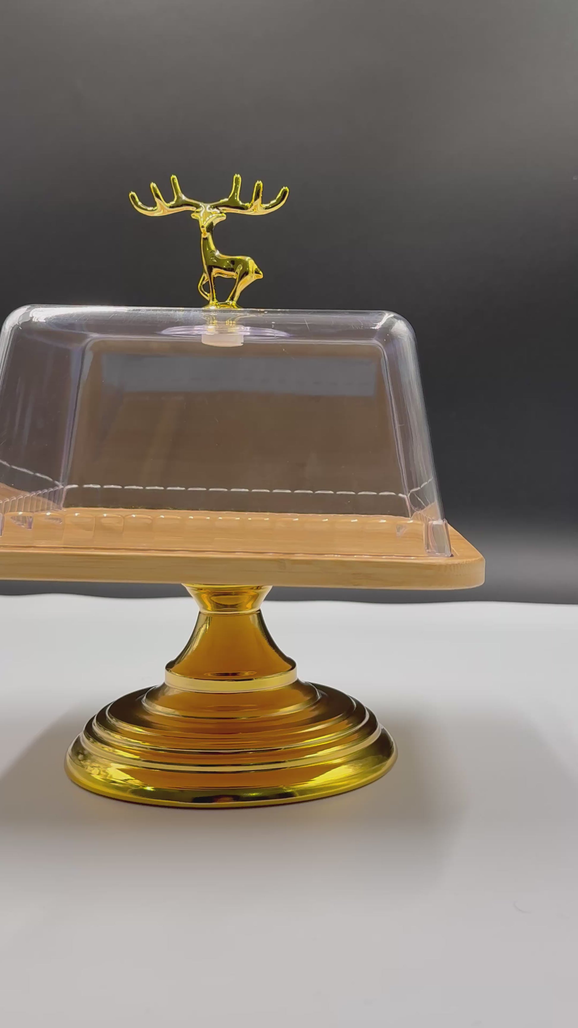 Featuring a premium wooden base and a sleek golden stand for a sophisticated charm 🌟, its crystal-clear acrylic lid preserves freshness while showcasing your brownies and treats in style 🍮. Ideal for serving and impressing on any occasion!