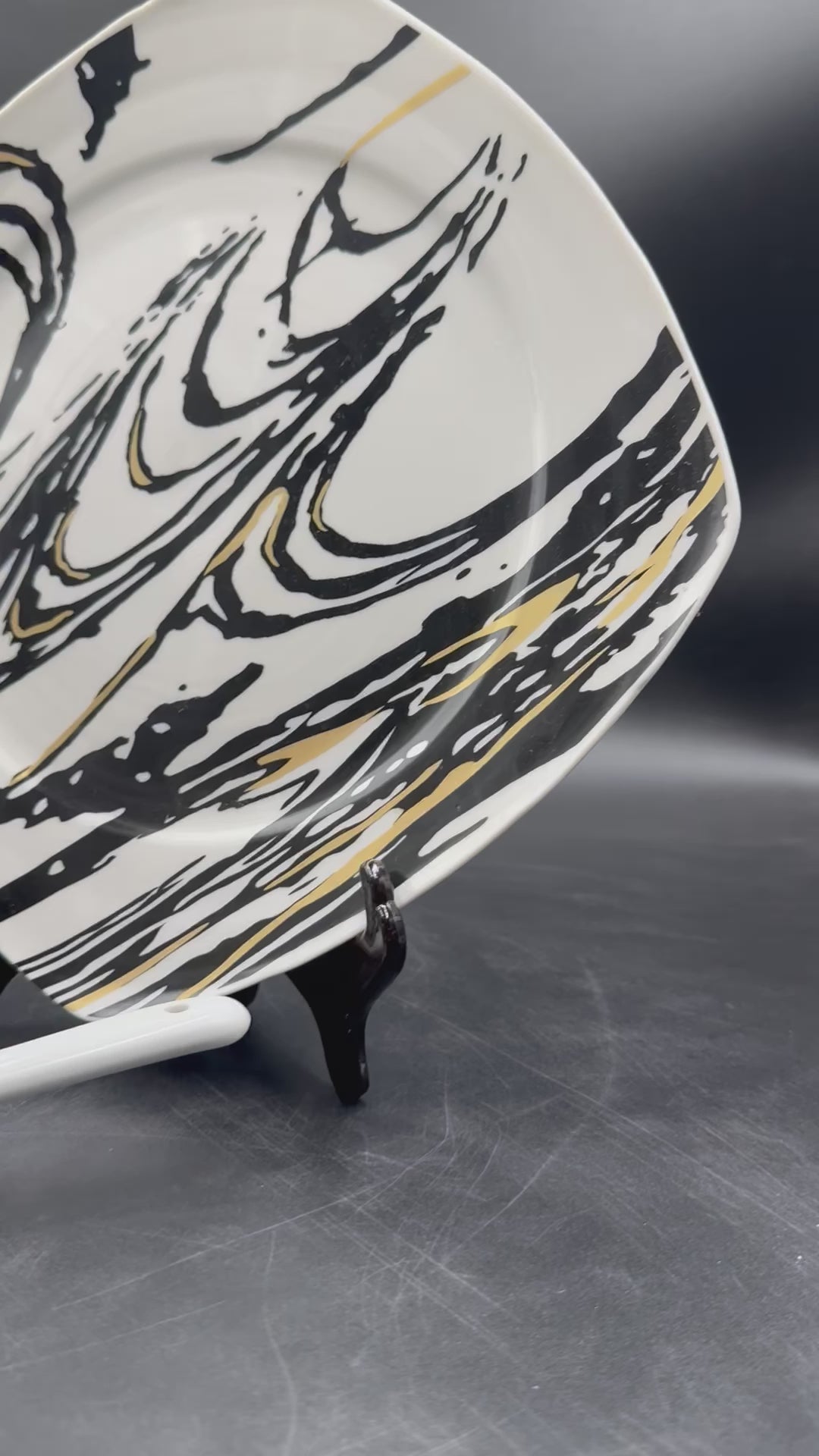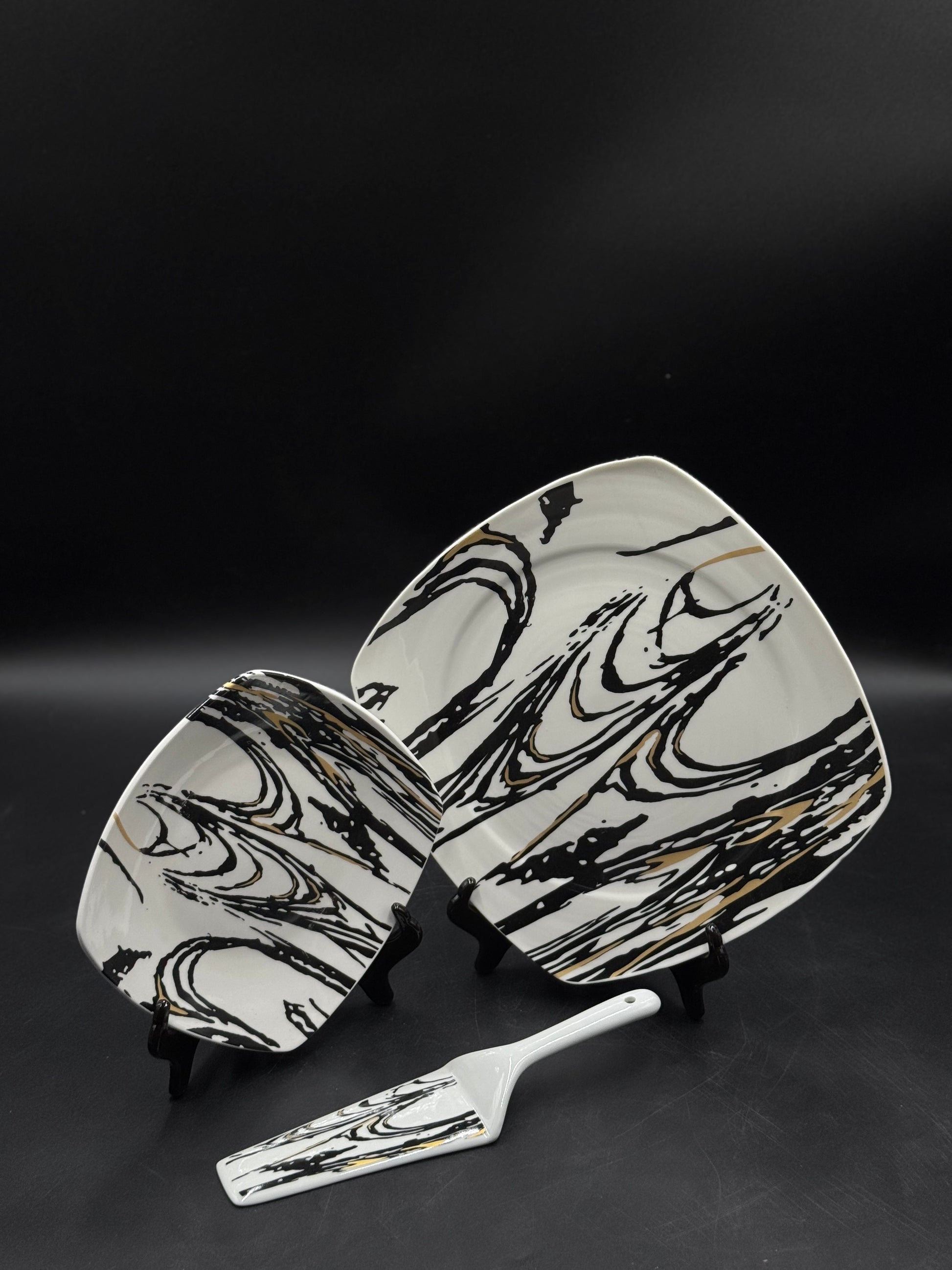 The 9pcs Square Marble Cake Set features a sleek black and white abstract pattern with a modern and urban style 🎂✨