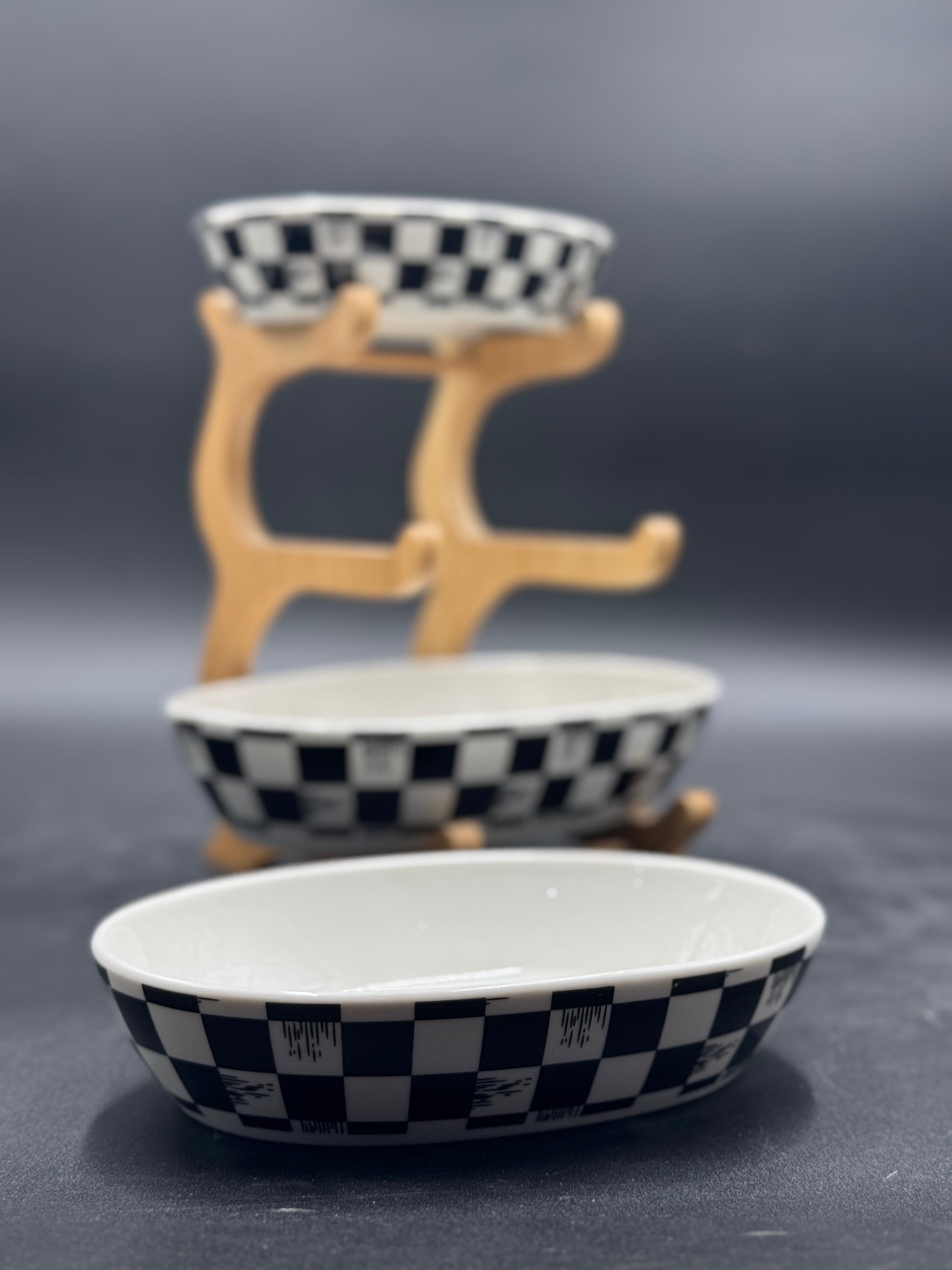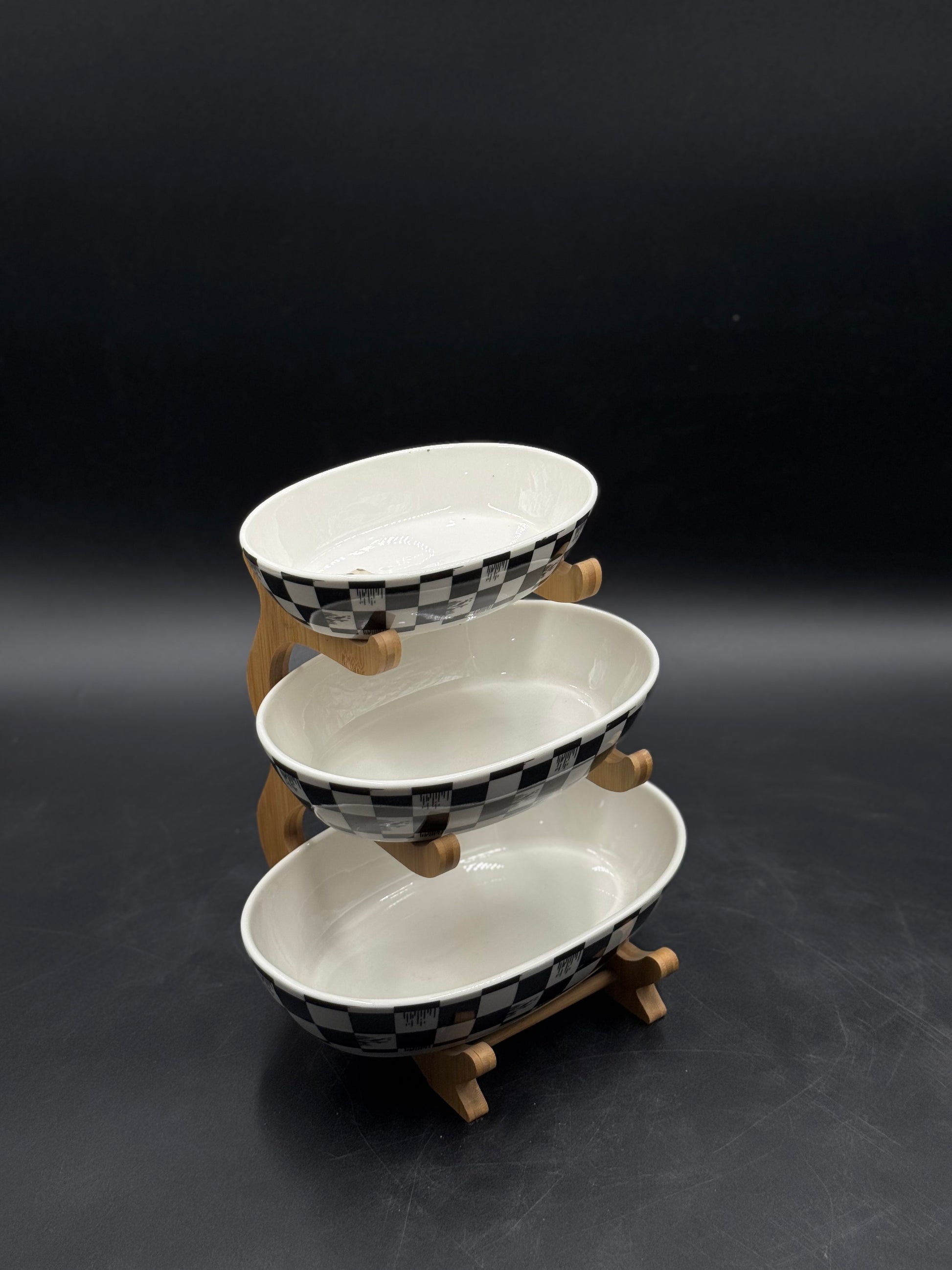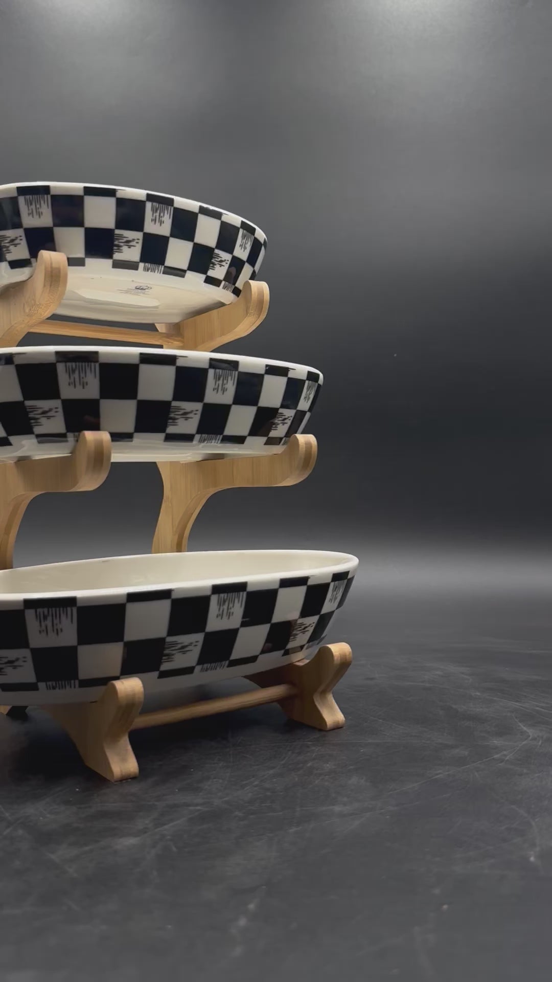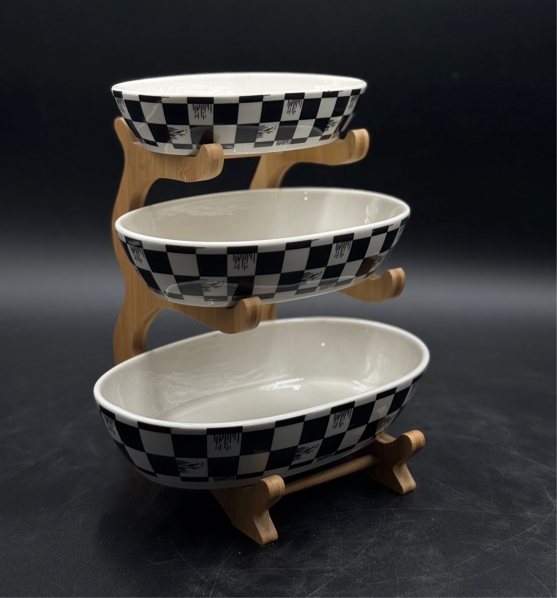3 Tier Food Serving Rackfeatures a sleek black and white check pattern with a modern, urban flair ✨