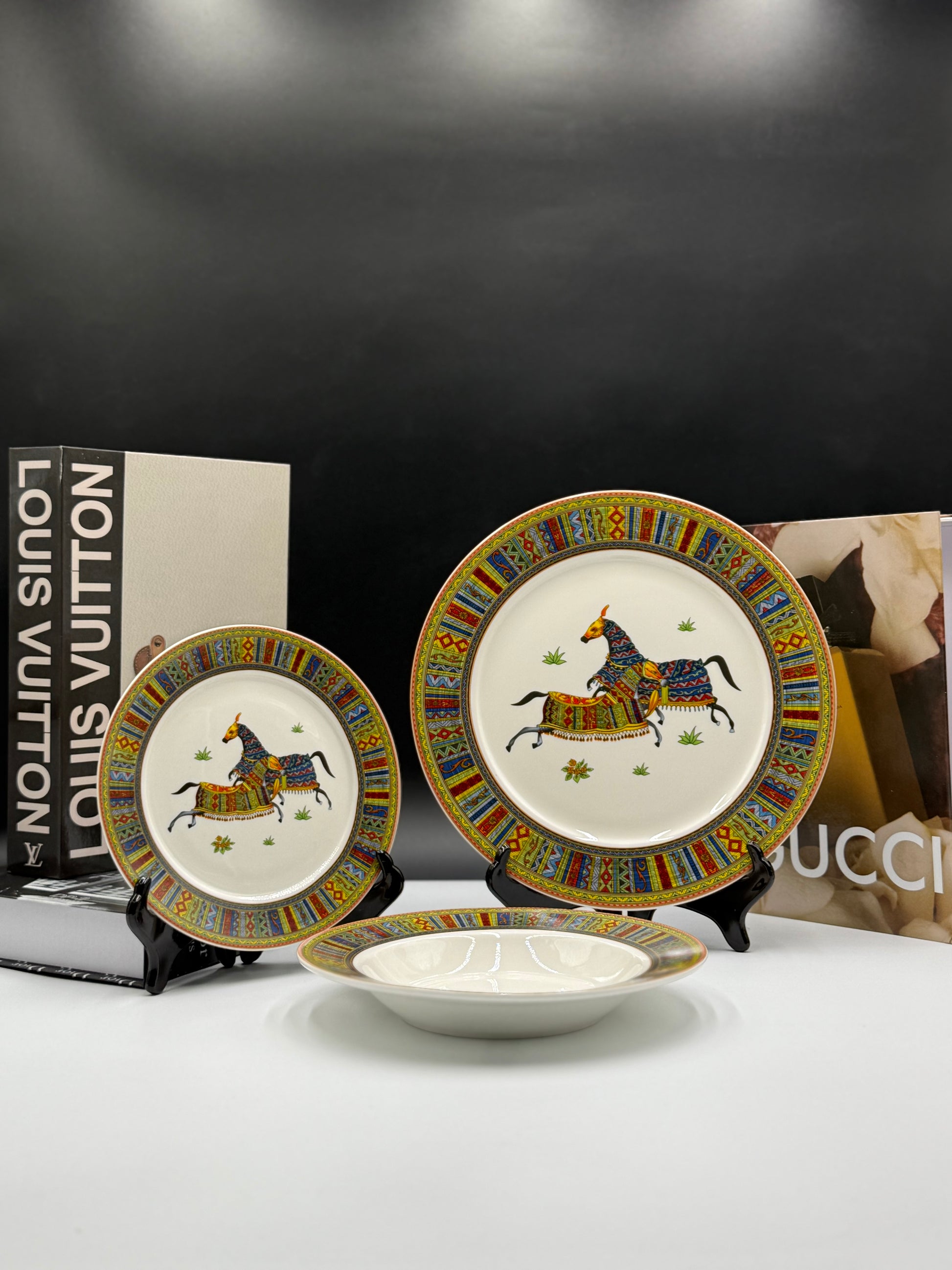 Elevate your dining experience with our 18 Pcs Hermes Bone China Plate Set! π Crafted from fine bone china, this exquisite set features intricate and regal designs, adding a touch of luxury to every meal. Perfect for elegant gatherings or everyday sophistication!