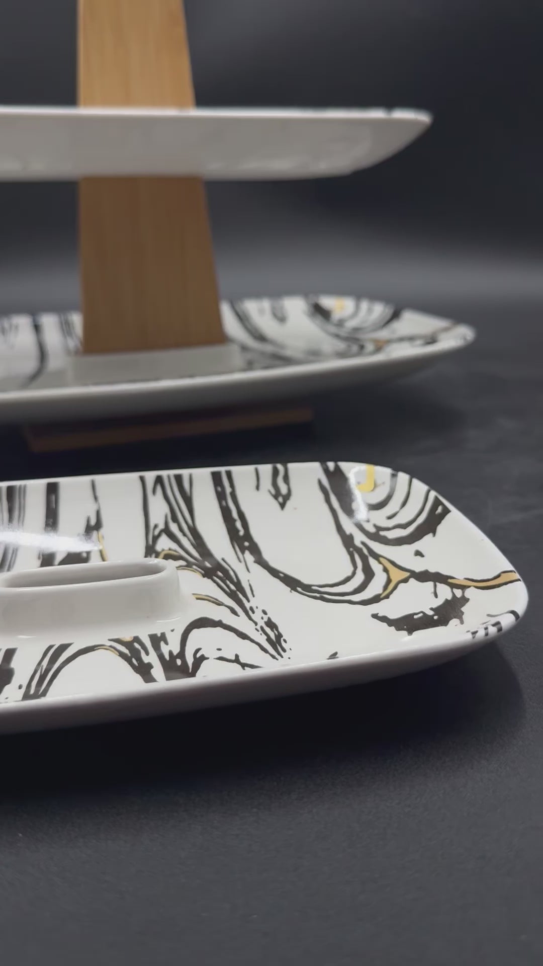 3 Tier Cake Stand features a sleek black and white abstract pattern with a modern and urban style 🎂✨