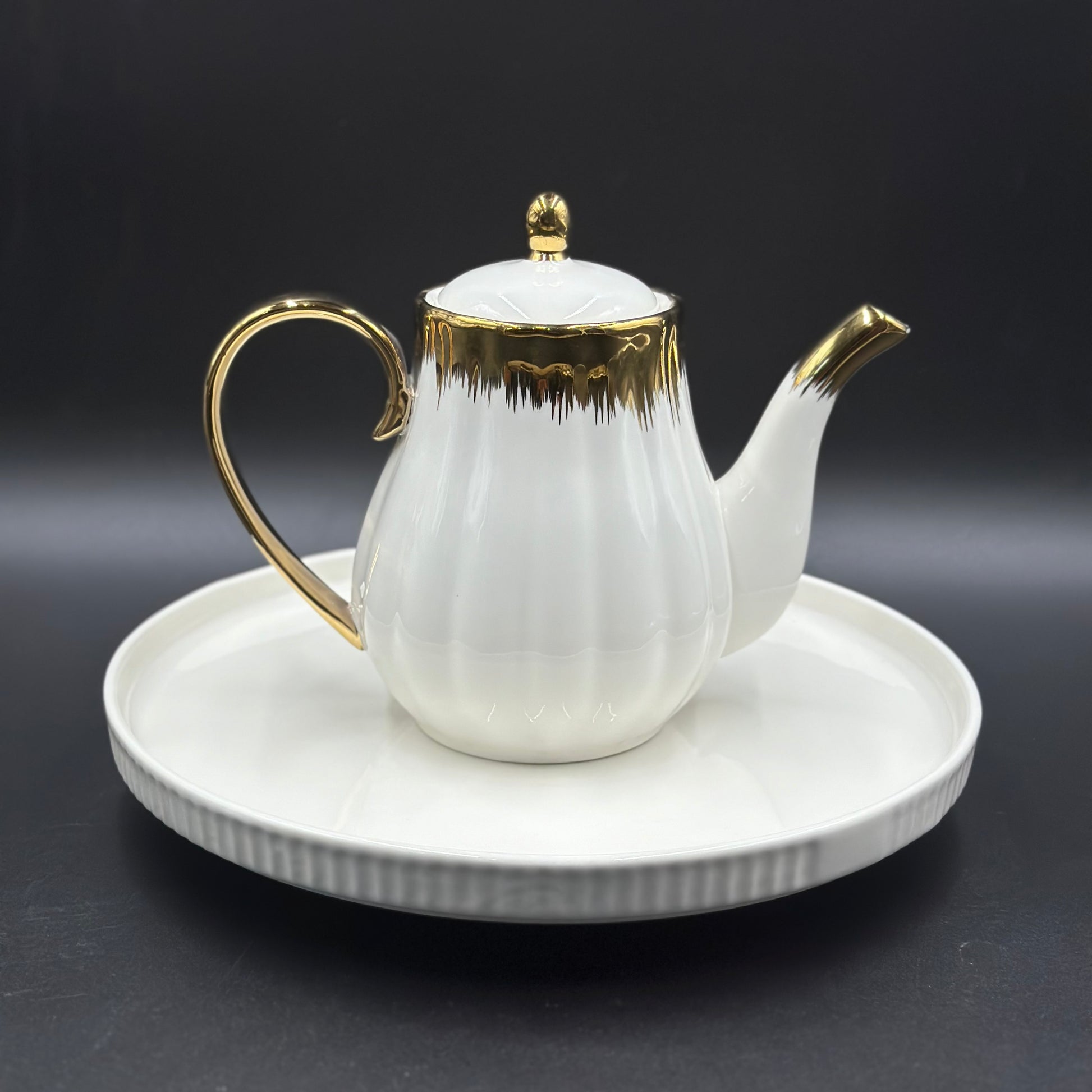 Golden Rim 8 Pcs Teaset with Rotating Tray ☕️
