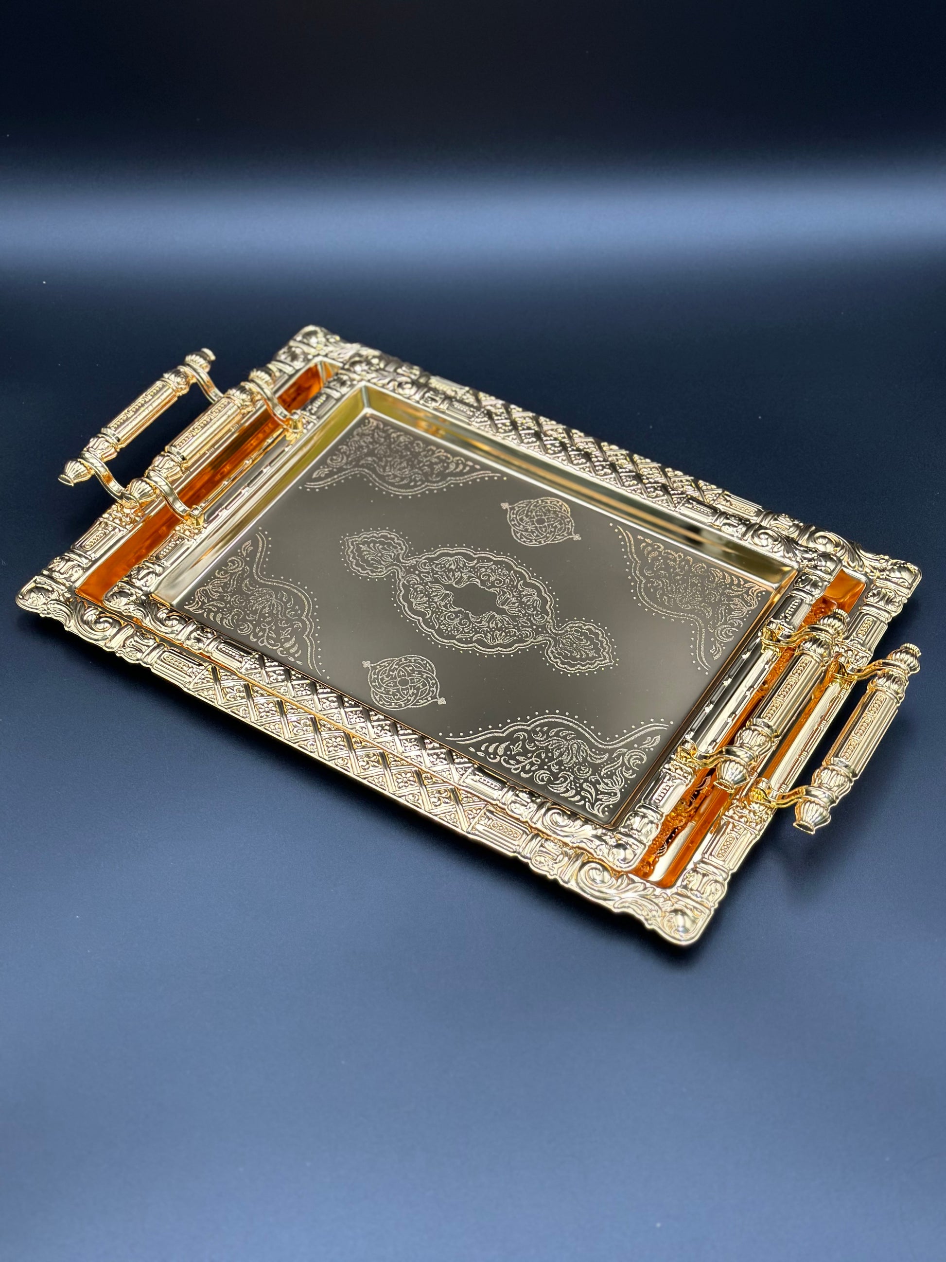 Premium Quality 2pcs Stainless Steel Golden Tray Set ✨