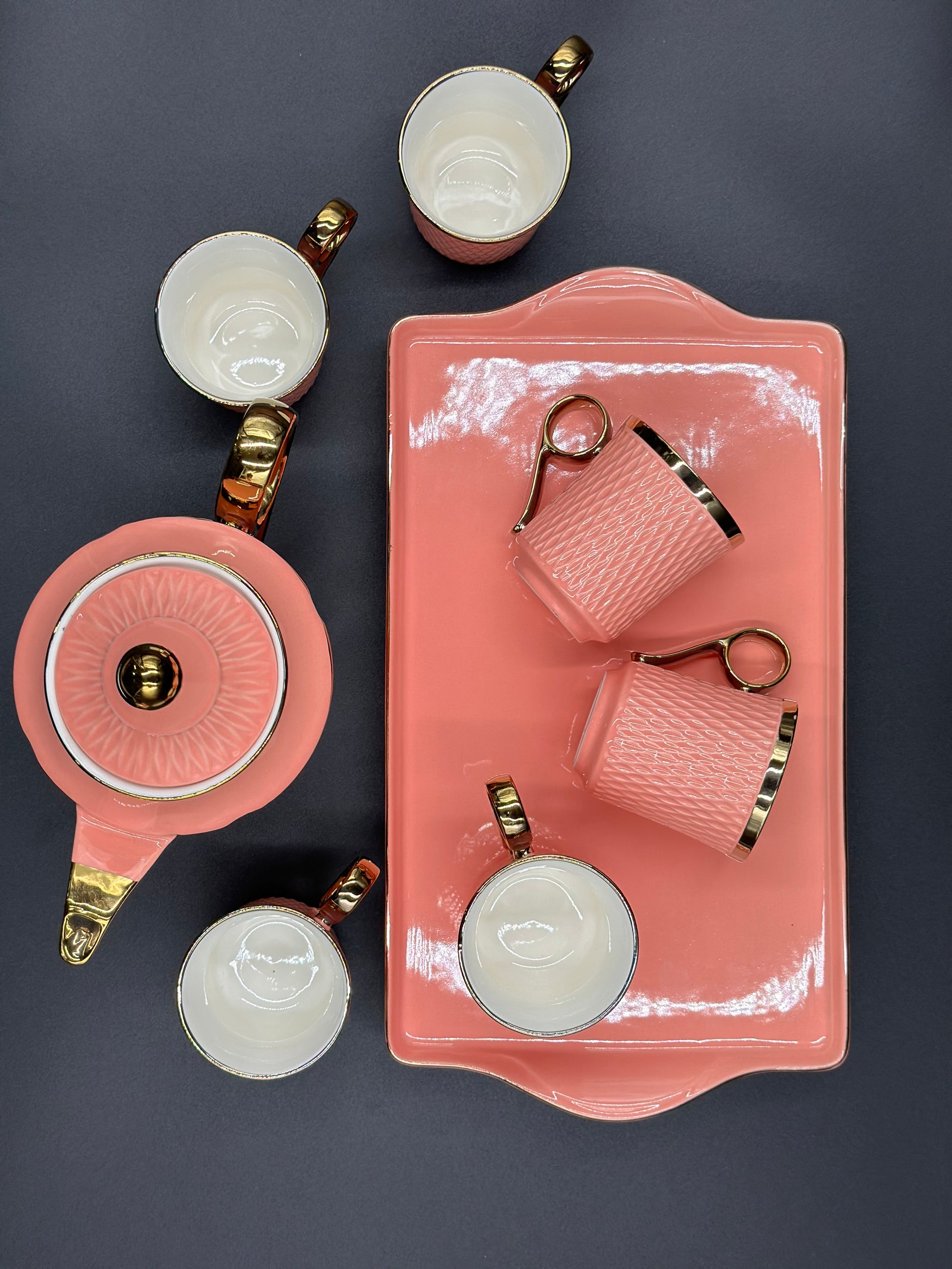 Ring Handle ☕ - 8 PCS Tea Set With Tray