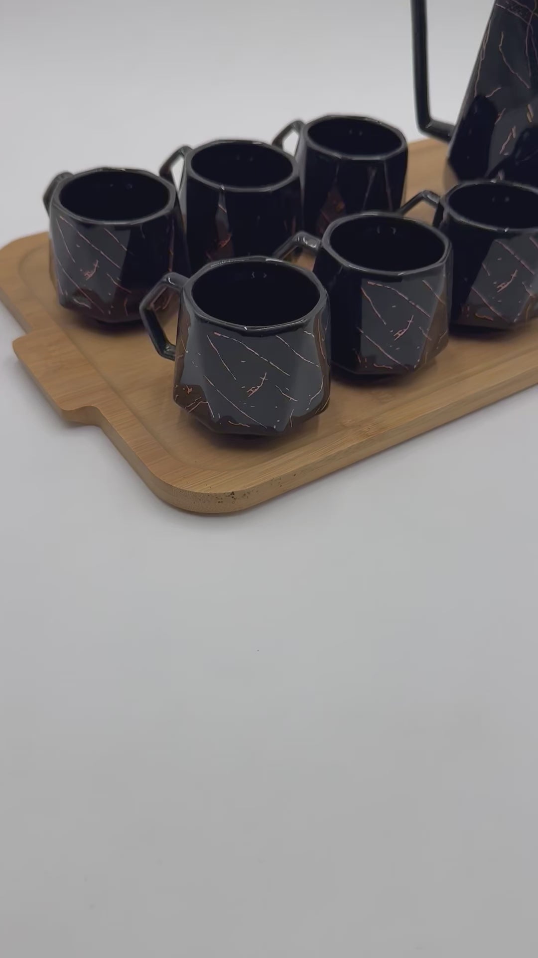 8 Pcs Kehwa Set features a stylish gold marble linework on black base✨